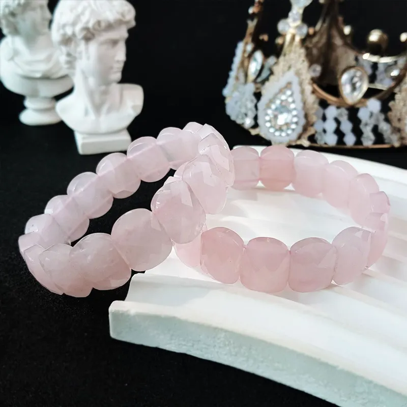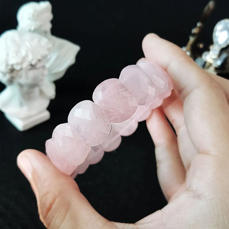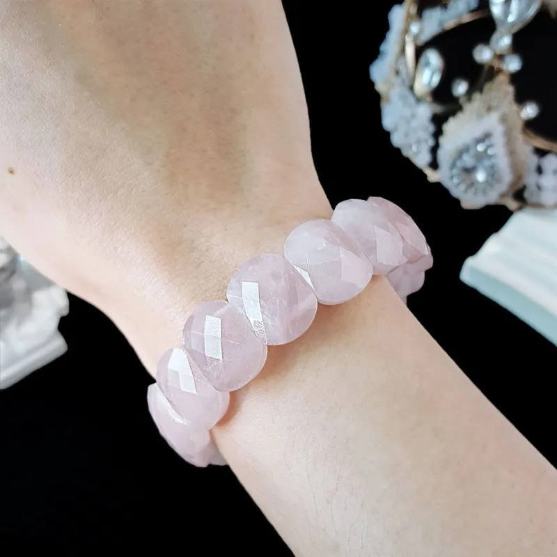 دستبند پهن تراش دار(فست کات) رز کوارتز اصل معدنی