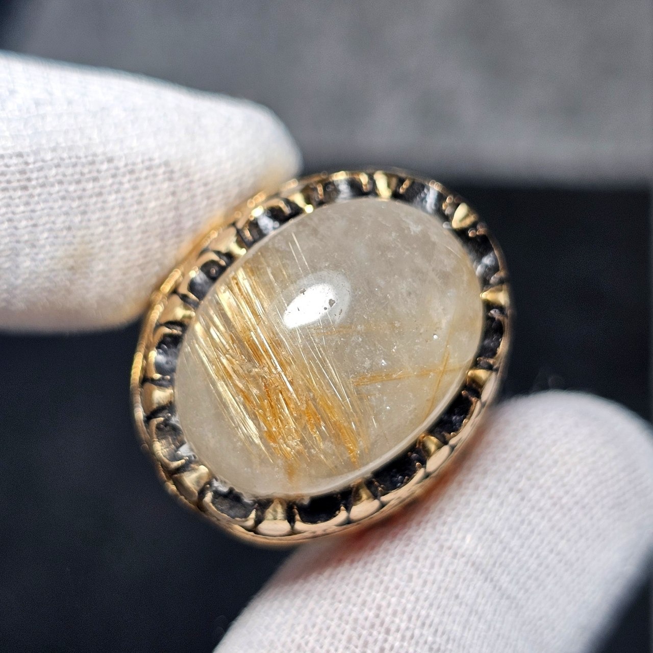 انگشتر طلا روس با سنگ طبیعی در مویی معدنی کد 35805