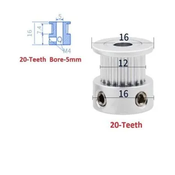 پولی 20 دندانه GT2 شفت 5 میلیمتری