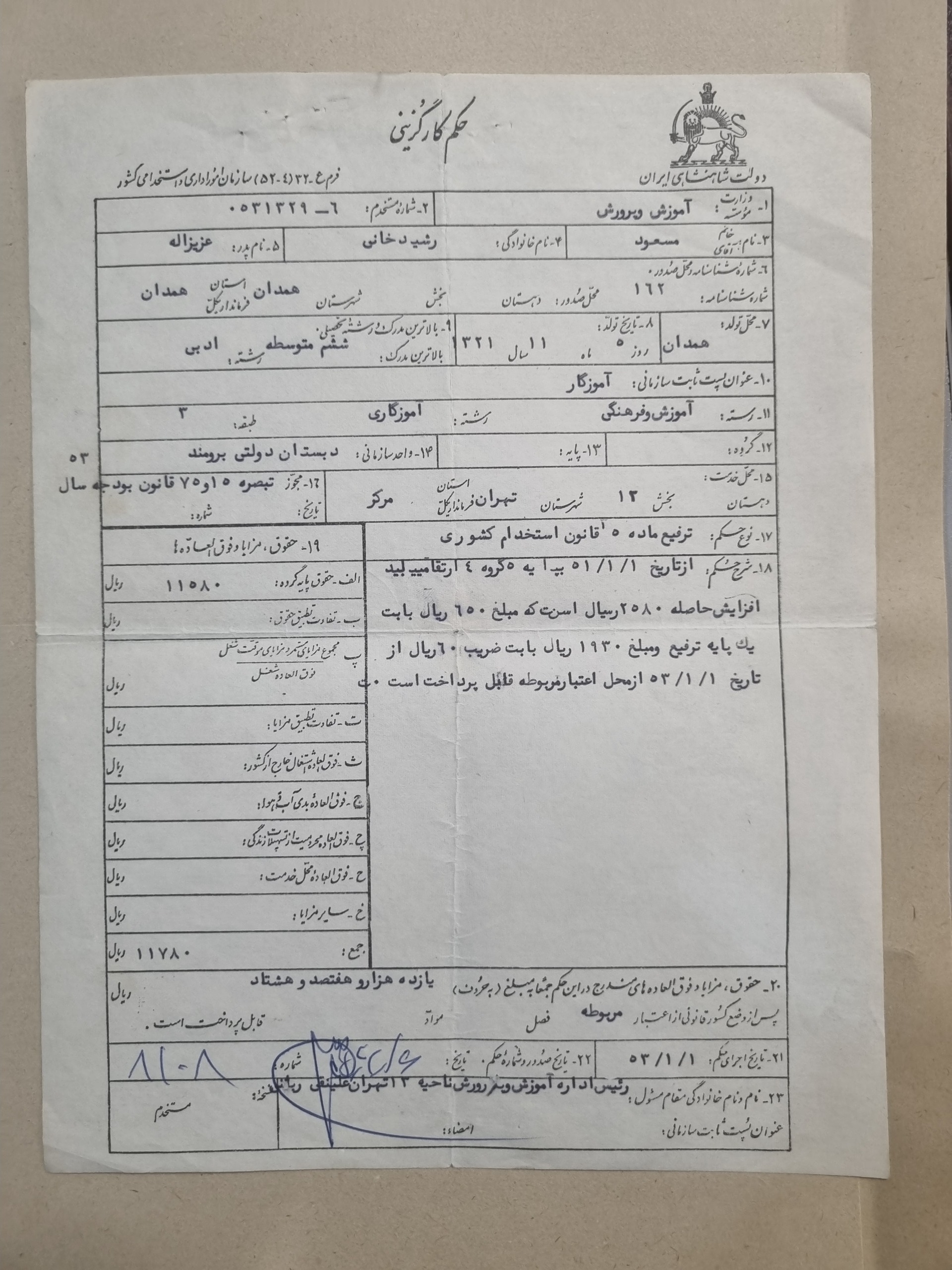 19 برگ سربرگ رسمی یا خصوصیشان حکم کارگزینی و نامه های اداری و یک سربرگ خام و....