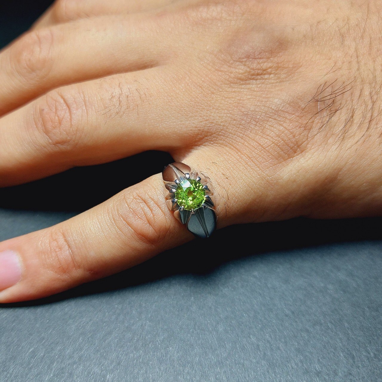 رکاب دستساز نقره شیک و خوشنما دارای آبکاری رادیوم مرصع به زبرجد افغان بسیار خوشرنگ