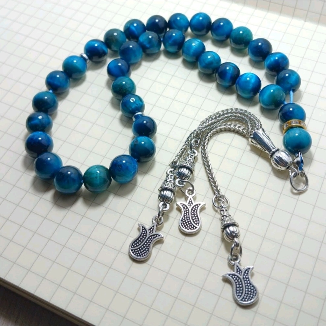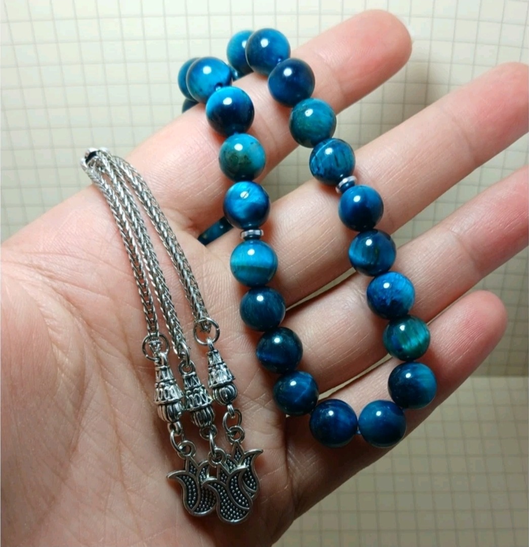 تسبیح چشم ببر آبی با رنگی آرام و خاص، یکی از مدلهای زیبا و چشمنواز تسبیحهای سنگی هست که طرفدارهای زیادی داره. این نوع چشم ببر که بهش «چشم شاهین» هم میگن، معمولاً طیفی از آبی تیره تا سرمهای با رگههای روشن داره و ظاهری مرموز و شیک داره. ویژگیها و فواید معنوی و روانی این تسبیح: آرامکننده ذهن و کاهش تنشهای فکری رنگ آبی این سنگ باعث میشه حس آرامش و سکوت درونی بیشتری تجربه کنی، مخصوصاً وقتی خستهای یا ذهنت شلوغه. تقویت تمرکز و دید بازتر نسبت به مسائل گفته میشه استفاده از این تسبیح باعث میشه دقیقتر فکر کنی، منطقیتر تصمیم بگیری و مسائل رو از چند زاویه ببینی. ایجاد حس وقار، سنگینی و متانت رنگ آبی تیره همیشه نماد آرامش و وقار بوده. این تسبیح برای افرادی که دوست دارن سبک رفتارشون سنگین و باوقار باشه خیلی مناسبه. افزایش دقت و هوشیاری چشم ببر آبی میتونه تو لحظاتی که نیاز به دقت زیاد داری (مثل مطالعه، کارهای فنی یا رانندگی)، همراه خوبی باشه. ظاهر متفاوت و خاصپسند برخلاف رنگهای گرمتر چشم ببر، نوع آبیاش برای کسانیکه دنبال تسبیح با ظاهر متفاوت، کلاسیک و کمی مرموز هستن، انتخاب ایدهآلیه.