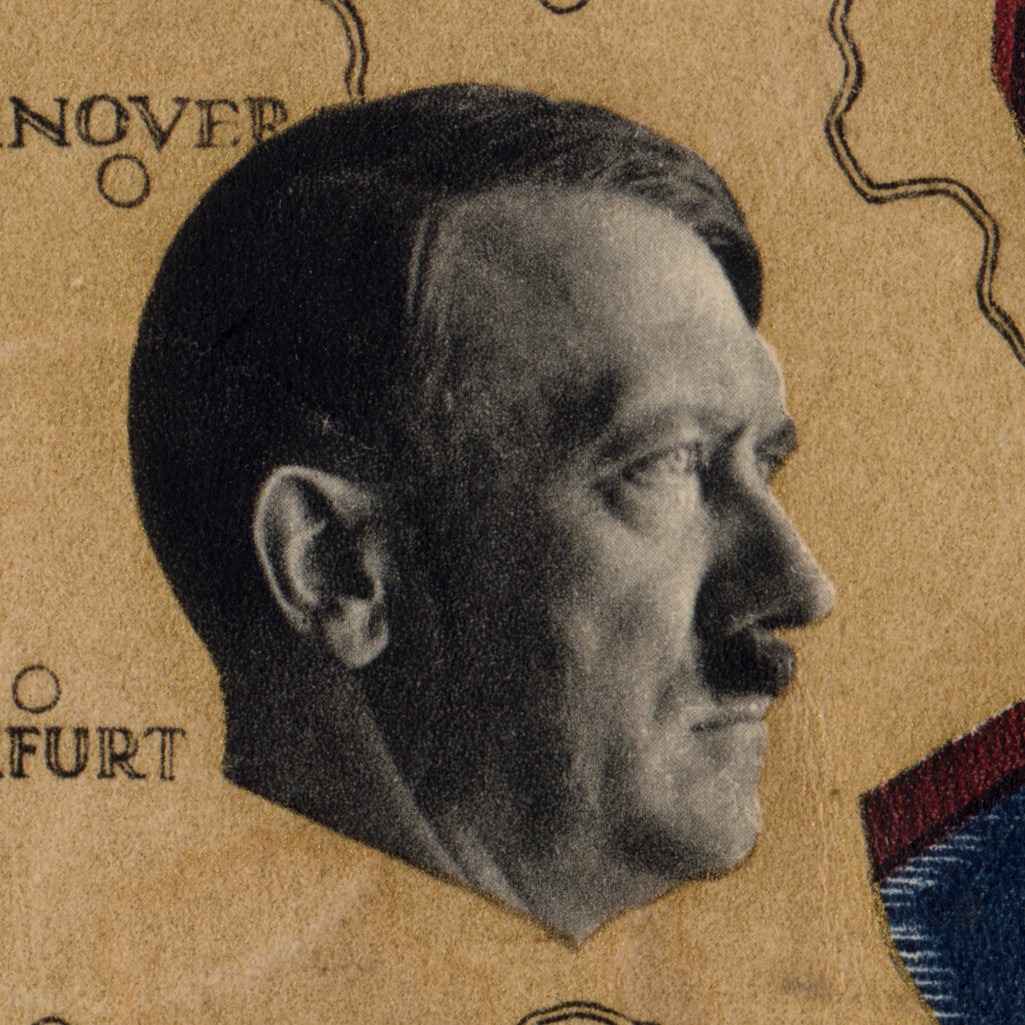 یک پرتره از آدولف هیتلر به عنوان "پیشوا" (Führer) در مرکز نقشه قرار دارد.