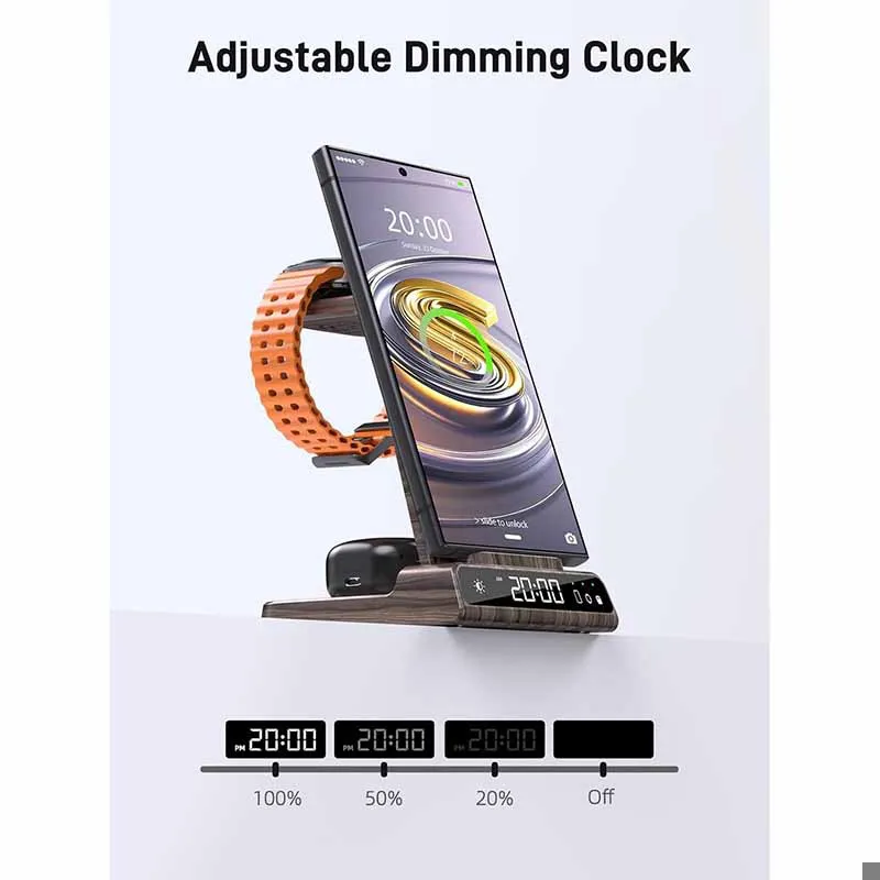 شیک و کم جا: این طراحی جمع و جور U شکل، شارژر، ساعت و نظمدهنده کابل را در یک جا جمع کرده و میز شما را از شلوغی نجات میدهد. دستگاه را شارژ کنید و زمان را فوراً بررسی کنید، بدون نیاز به تلفن. کوچک، شیک و با اندازههای عالی برای هر میزی.