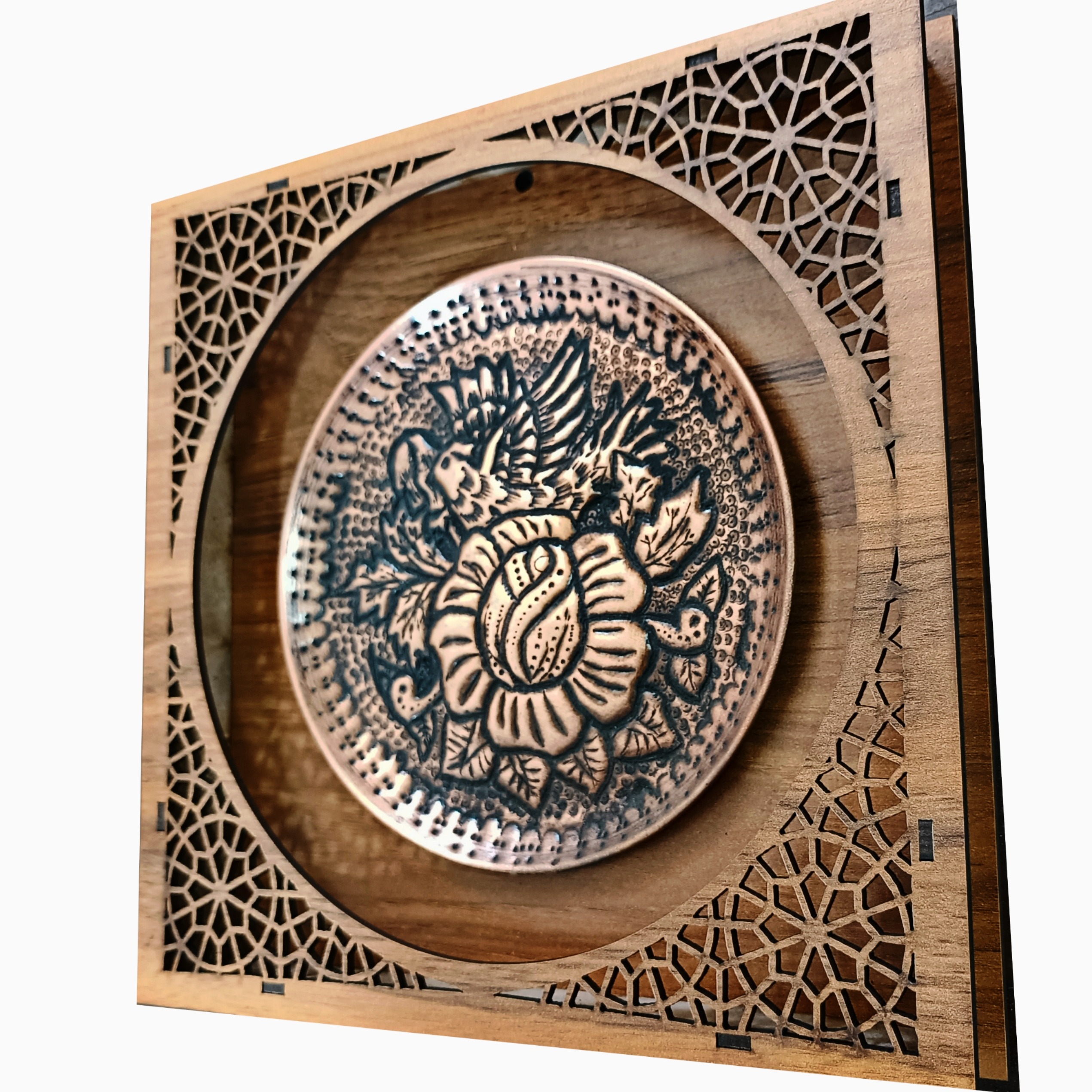 بشقاب قلمزنی مسی گل و مرغ