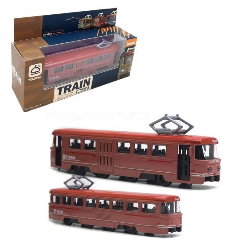ماکت تراموا فلزی ترن شهری چراغدار و موزیکال جعبه دارد