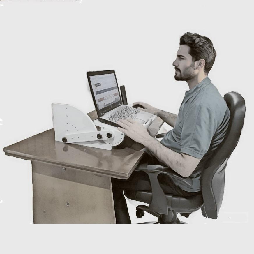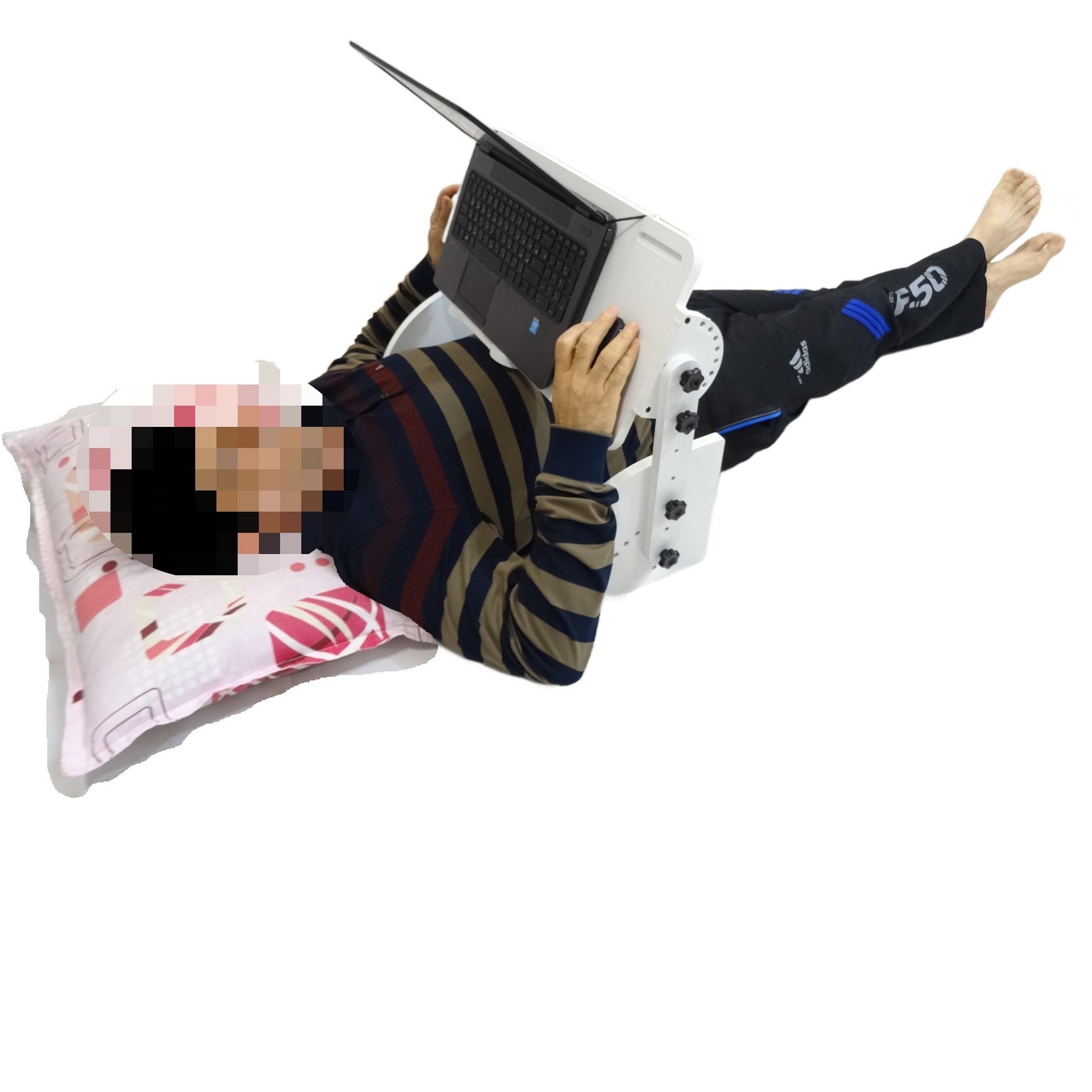 این میز قابل استفاده برای هر سن و هر جثه میباشد .یکی از مشکلات هنگام استفاده از لپ تاپ فرم نامناسب بدن و ستون فقرات هست که در طولانی مدت ممکن است موجب مشکلات جسمی گردد اگرمیخواهید لپ تاپ را در هر وضعیت از جمله نشسته روی زمین ،نشسته روی راحتی ، خوابیده ،درازکش و یا پشت میزمطالعه ، بگونه ای که بهترین زوایه دید و بهترین ارگونومی را داشته باشید بدون عوارضی از قبیل گردن درد میز نگهدارنده لپ تاپ پایا گزینه مناسبی هست . طراحی آن به گونه ای است که در حالات گوناگون کاربر می تواند براحتی هم ارتفاع آن وهم زاویه شیب میز را درهروضعیتی دلخواه تنظیم کند .اتصالات این میز تحمل وزن بیش از یک لپ تاپ را دارد و با در نظر گرفتن ابعاد قابل توجه آن برای هر نوع لپ تاپ کاربرد دارد و حتی میتوان از آن برای میز تحریر و یا میزغذا خوری وغیره استفاده کرد . یکی دیگر از ویژگی های این میز سبک بودن آن است و علاوه برآن این میز با چند پیج سریع و آسان مونتاژ و دمونتاژمیگردد لذا  با توجه به زندگی آپارتمانی و فضای کم منازل در صورتی که بخواهید ازآن استفاده نکنید و یا خواسته باشید جابجا شوید کافی است سریع میز را ازهم جدا کرده تادر حداقل فضا نگهداری شود . میز دارای لبه نگهدارنده و نیز کش مهار است تا در حالتی که صفحه میزحتی تا 90 درجه چرخانده می شود از افتادن لپ تاپ  جلوگیری نماید . همچنین قسمتی از صفحه میز مشبک است تا با عبور جریان هوا باعث خنک کای لپ تاپ گردد.این مدل  مجهز به فن الکتریکی است تا خنک کاری لپ تاپ به بهترین وجه انجام شود . همچنین مساحت میز بقدری هست که می توان از قسمتی از آن برای قرارگیری  وحرکت موس استفاده نمود .