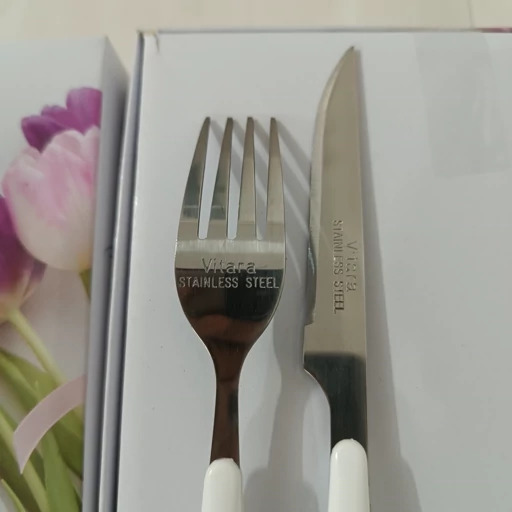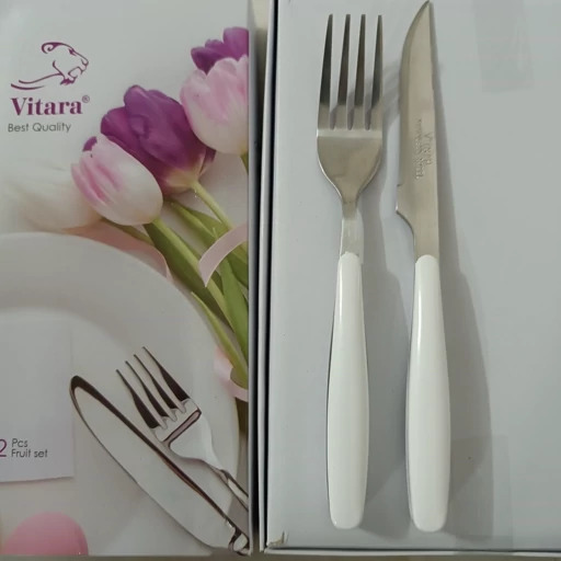 ست کارد و چنگال میوه خوری تیغه یک پارچه بدون جدا شدن از دسته تیغه فوق العاده تیز بهترین کیفیت فولاد ضد زنگ 6 عدد چنگال میوه خوری 6 عدد کارد میوه خوری ست کارد و چنگال طرح سرامیکی جنس عالی و قیمت بسیار مناسب
