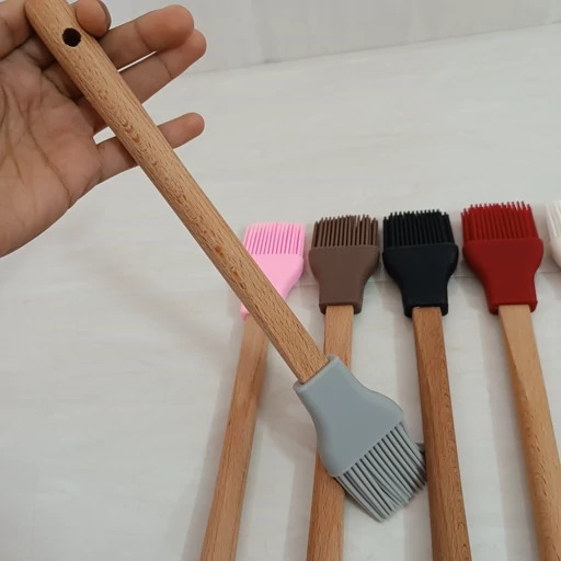 فرچه سیلیکونی دسته چوبی گرد ابعاد داخل توضیحات نوشته شده در رنگ های مختلف موجود هست