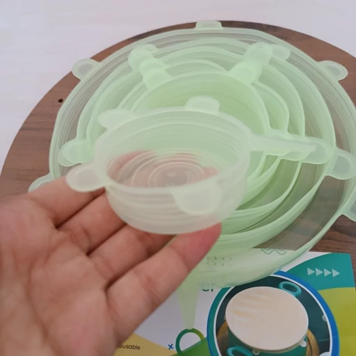 درپوش محافظ غذا از جنس رپوشهای سیلیکونی با مقاوت حرارتی تا 450 درجه سانتیگراد و قابلیت انعطاف پذیری فوق العاده در 6 سایز متفاوت تقریبا تمام ظروف آشپزخانه شما را پوشش میدهند این محصول بر روی انواع ظروف با شکل های مختلف به راحتی قرار گرفته و از تبادل هوای میان محیط و محتویات ظرف جلوگیری میکند تا طراوت و تازگی غذا سالاد سبزیجات میوه ها و ... حفظ شود. همچنین قابل استفاده در فریزر و مایکروویو است. این محصول قابل شستشو است و میتوان آن را در ماشین ظرفشویی شست