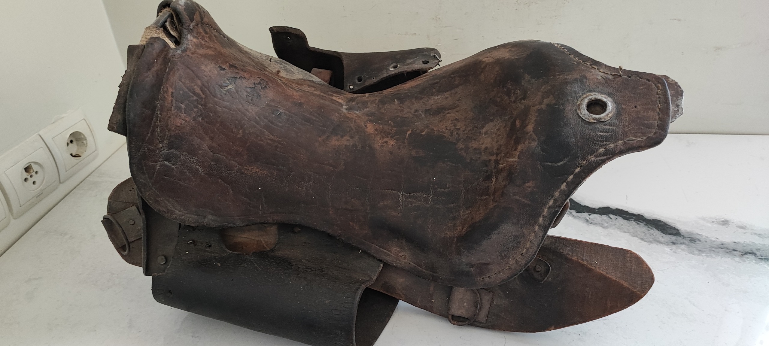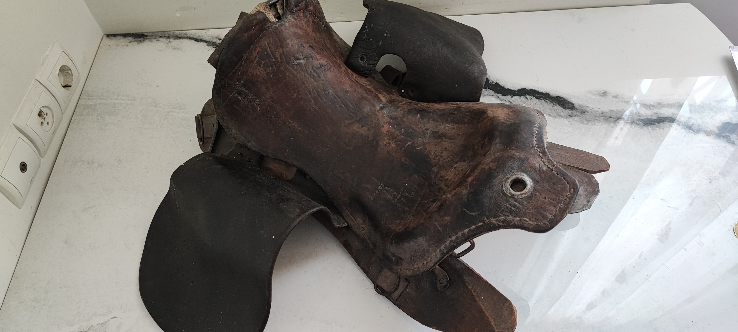 جنس تلفیقی از چرم و چوب و فولاد، کمیاب و بسیار قدیمی و کلکسیونی و هم قابل استفاده