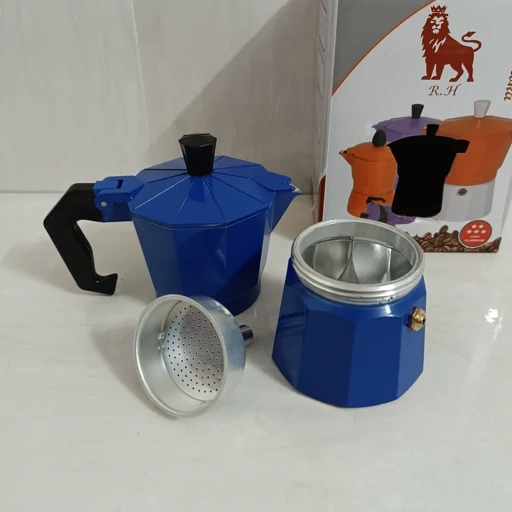 قهوه جوش رنگی 2 کاپ آلمینیومی مناسب برای روی گاز رنگی و جذاب مناسب برای دو نفر تا سوپاپ باید آب بریزیم و مخزن رو پر از قهوه کنیم روی گاز گذاشته و بگذاریم جوش بیاید و از سری بالای قهوه جوش بیرون بیایید .قهوه ی شما آماده هست