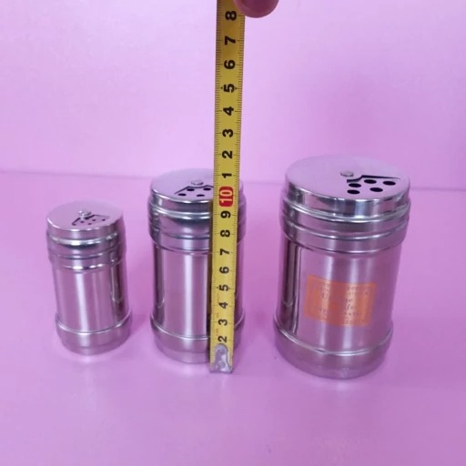 نمکدان سه عددی جنس استیل بهترین کیفیت فولاد زد زنگ از کوچک به بزرگ مارک یونیک لایف استفاده از شبکه چرخش چند منظوره به طور جداگانه کالاهای با کیفیت فولاد ضد زنگ کوچک سایز قطر 4 در ارتفاع 7.5 متوسط سایز قطر 5 در ارتفاع 9.5 بزرگ سایز قطر 6 در ارتفاع 10 سانتی متر