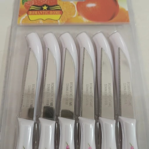 کارد میوه خوری 12 تایی دسته طرح دار مارک رومانتیک جنس تیغه استیل ضد زنگ طرح سرامیکی طرح گل دار بسیار شیک جنس عالی طول 16 سانت جنس دسته پلاستیک فشرده مقاوم برای پذیرایی بسیار عالی است
