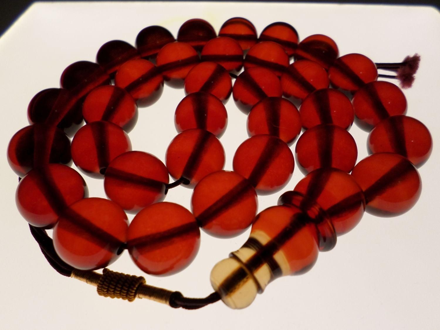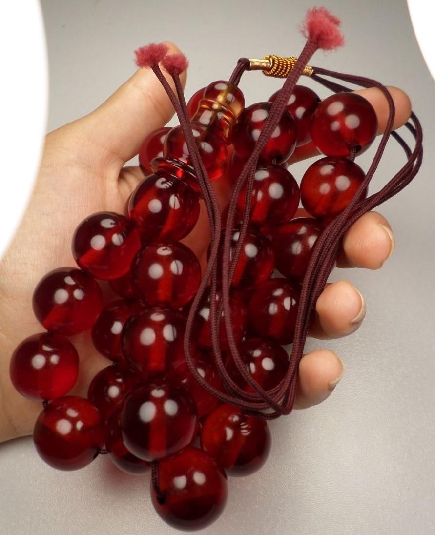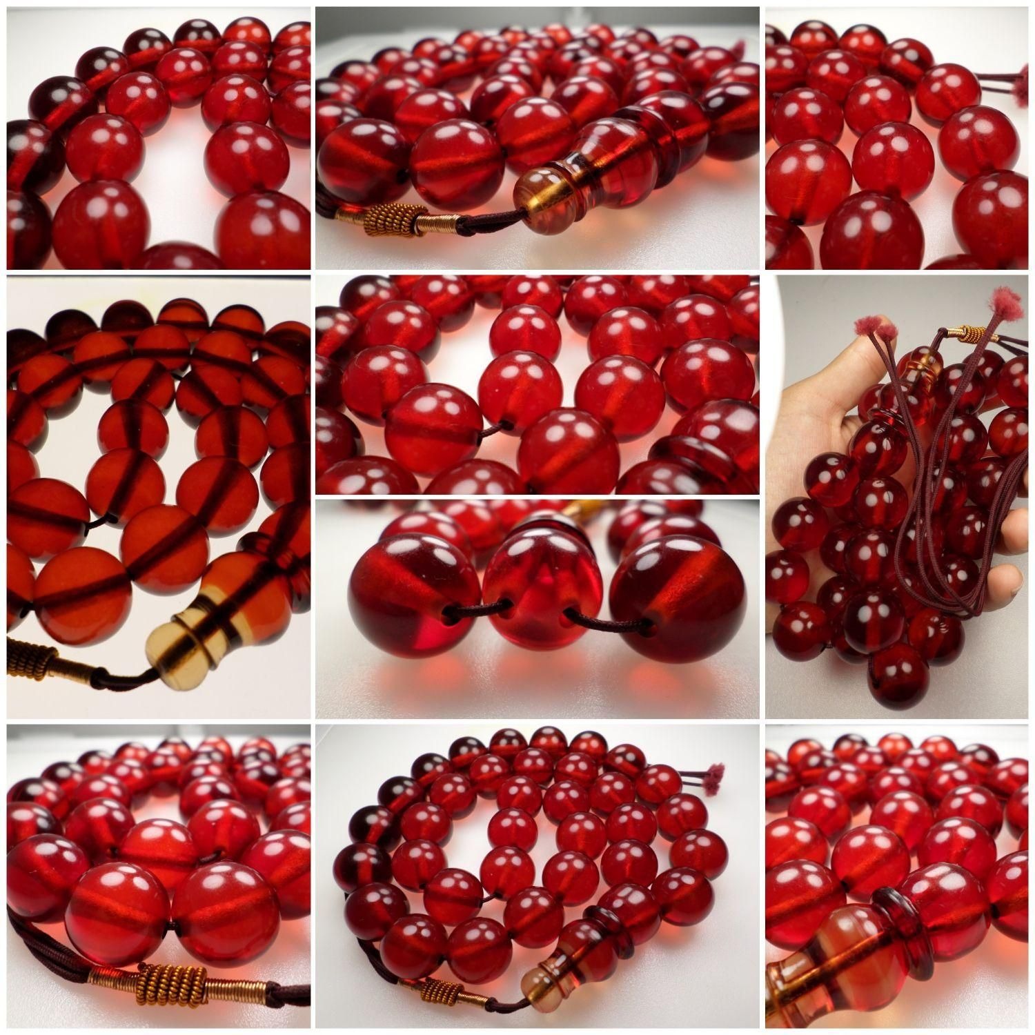 تسبیح سندلوس آب حیاتی آنتیک  شمش و تراش اروپایی به وزن تقریبی 167 گرم  و به رنگ سرخ اناری یه نمونه جوندار سنگین وزن غول پیکر  و خوش قواره .