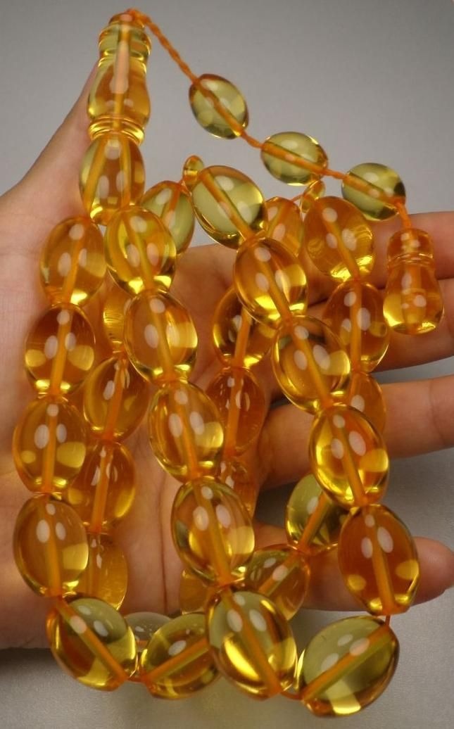 تسبیح 33 عددی کهربا پودری لامپی بسیار درشت کد 195