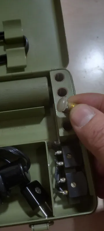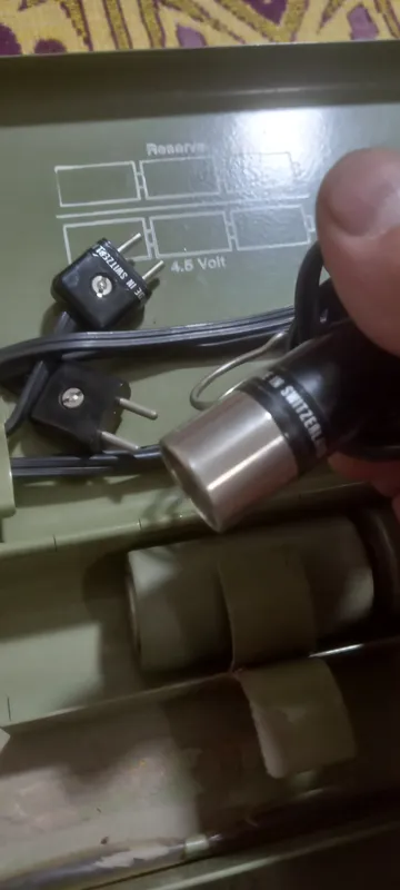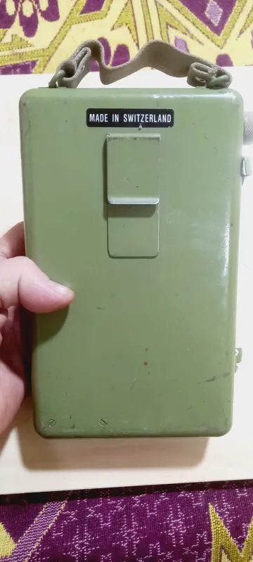 باتری دوربینهای نقشه برداری سوئیسی قدیمی که هم چراغ قوه داره و هم کابل سیار که به دوربین وصل بشه و نیرو با یک کلید در بغل قابل تنظیم میباشد که کم و زیاد بشه و البته 6 عدد باتری بزرگ میخوره که کارخانه برای اینکه نشان بده چه نوع باتری میخوره دو عدد باتری چوبی داخلش گذاشته البته اونها فقط برای نشان دادن اینه که چه نوع باتری میخوره وگرنه از چوب خالی ساخته شدن و در پشت جعبه دوعدد پریز شاستی دار داره که وقتی شاستی رو میکشی عقب درب پریز باز میشه و میشه هم چراغ قوه و هم سیم سیار رو بهش وصل کرد البته بهغیر از دوربین به بیشتر وسایل برقی باتری خور میخوره چون برقش قابل تنظیم هستش ..خلاصه کمیاب و کلکسیونی و البته کاربردی میباشد