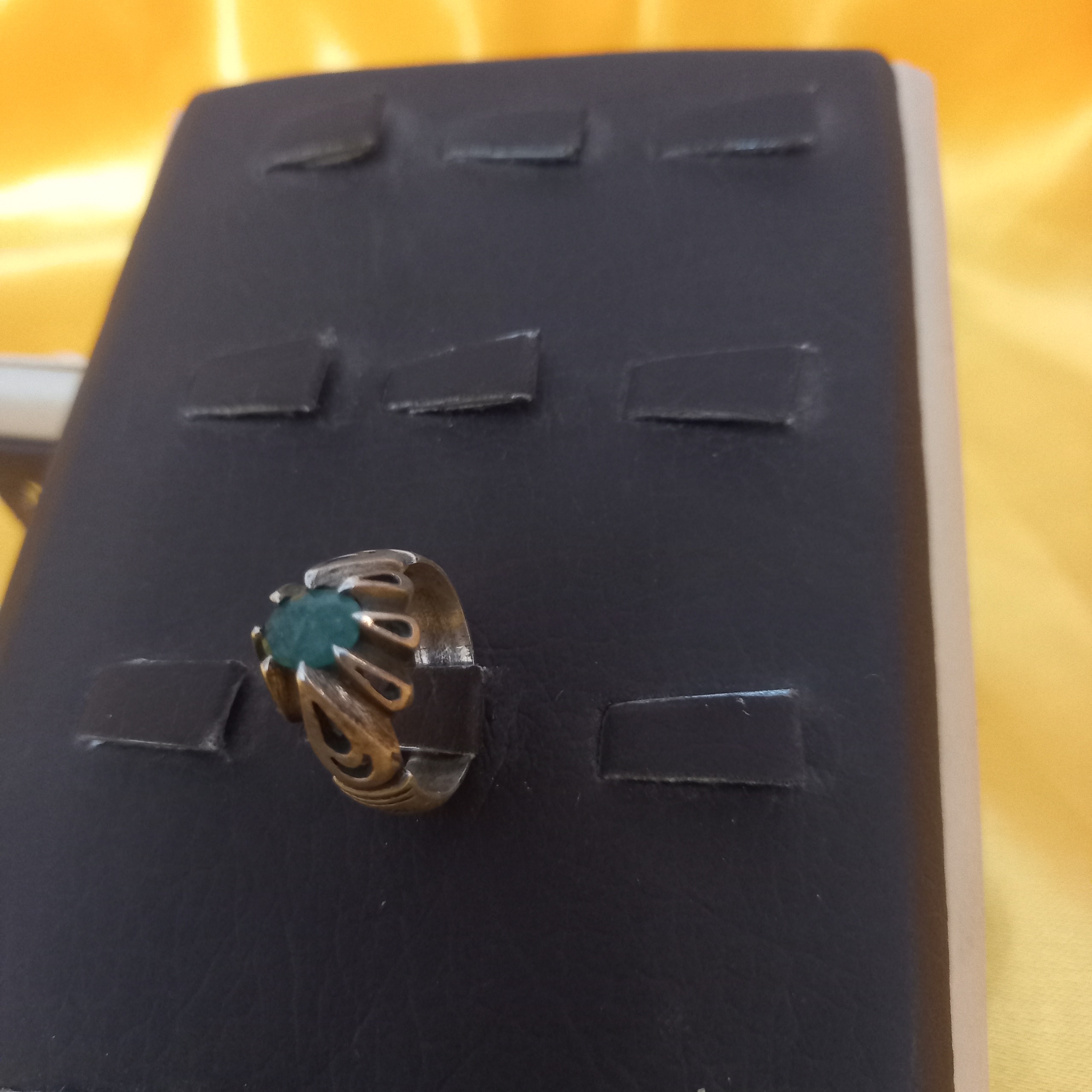 انگشتر نقره با نگین زمرد اندازه نگین نسبتا کوچک البته به سایز رکاب متناسب است برای بزرگسالان اندازه انگش