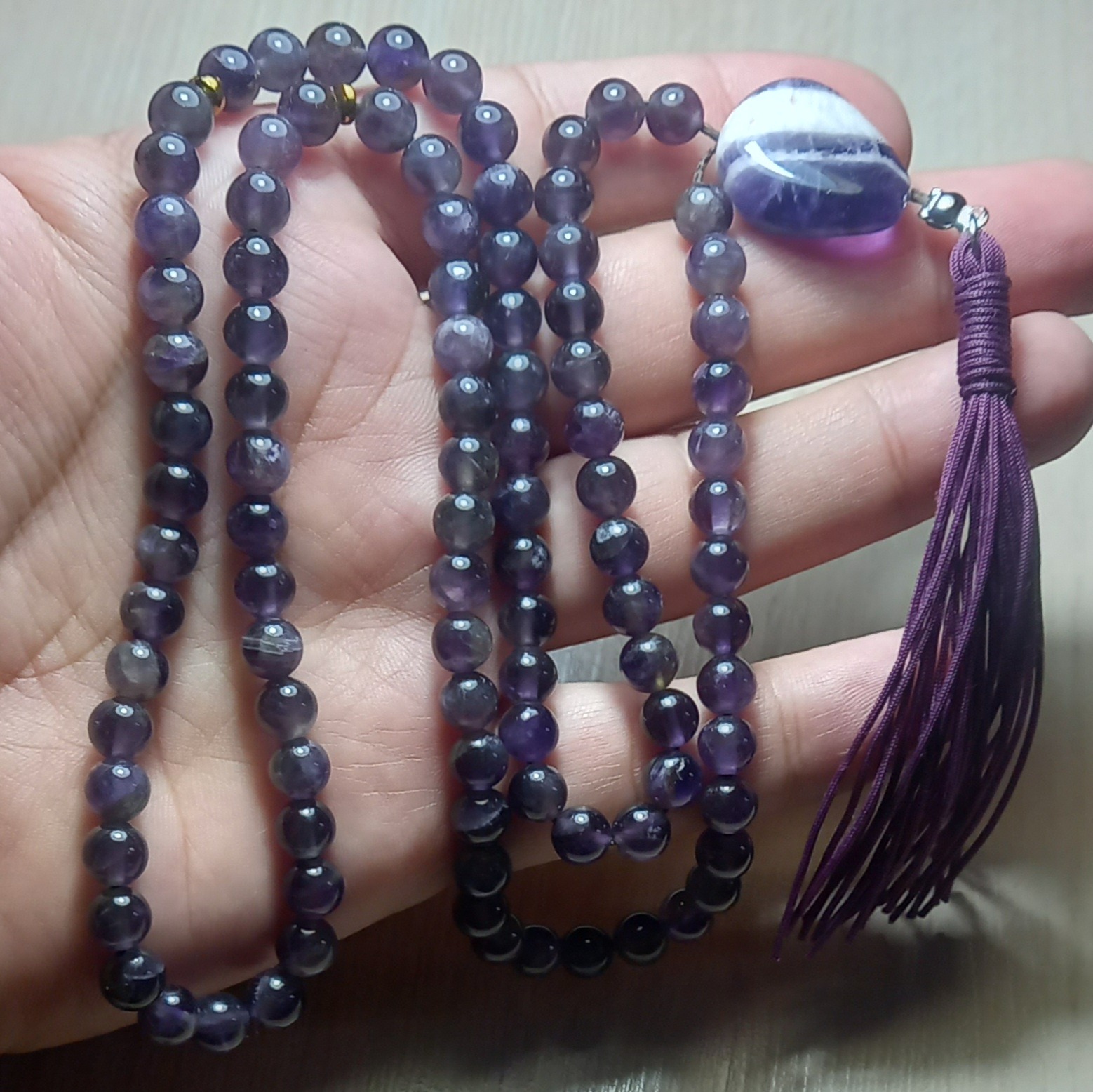 تسبیح آمیتیست معدنی و مرغوب 101 دانه 6 میل