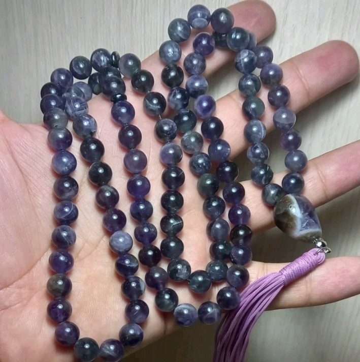 تسبیح آمیتیست معدنی و مرغوب 101 دانه 8 میل