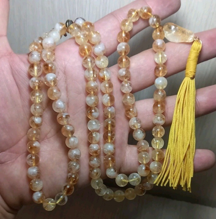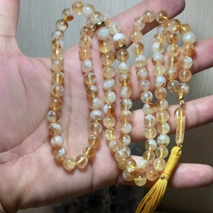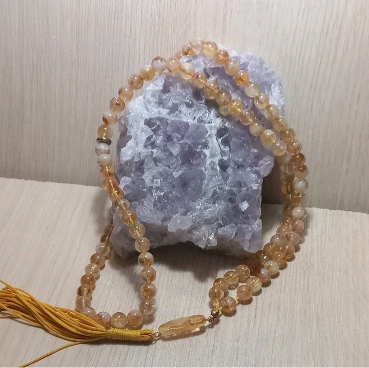 تسبیح سیترین معدنی و مرغوب 101 دانه 8 میل