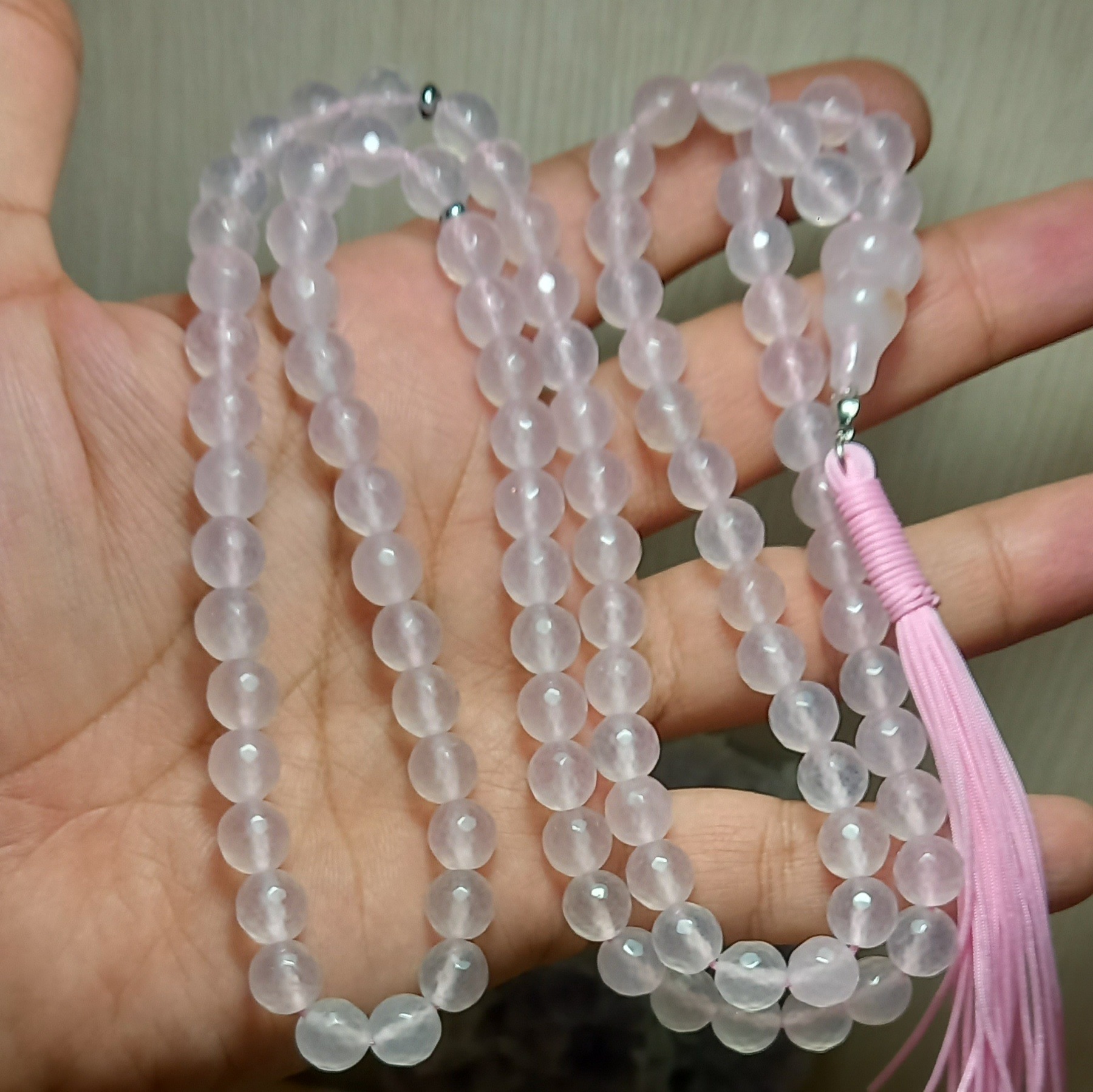تسبیح رزکوارتز سنگ عشق تراش دار 101دانه 8 میل