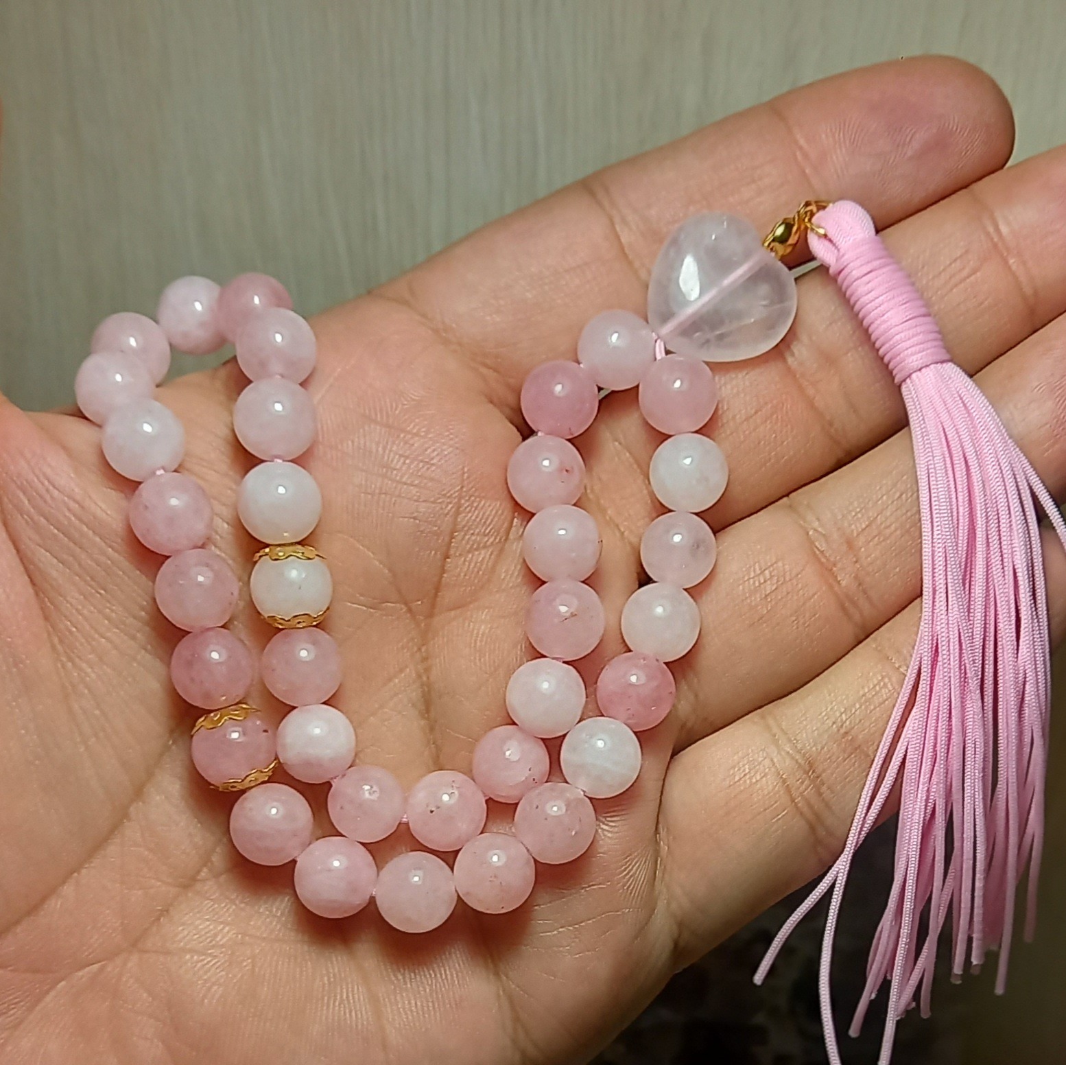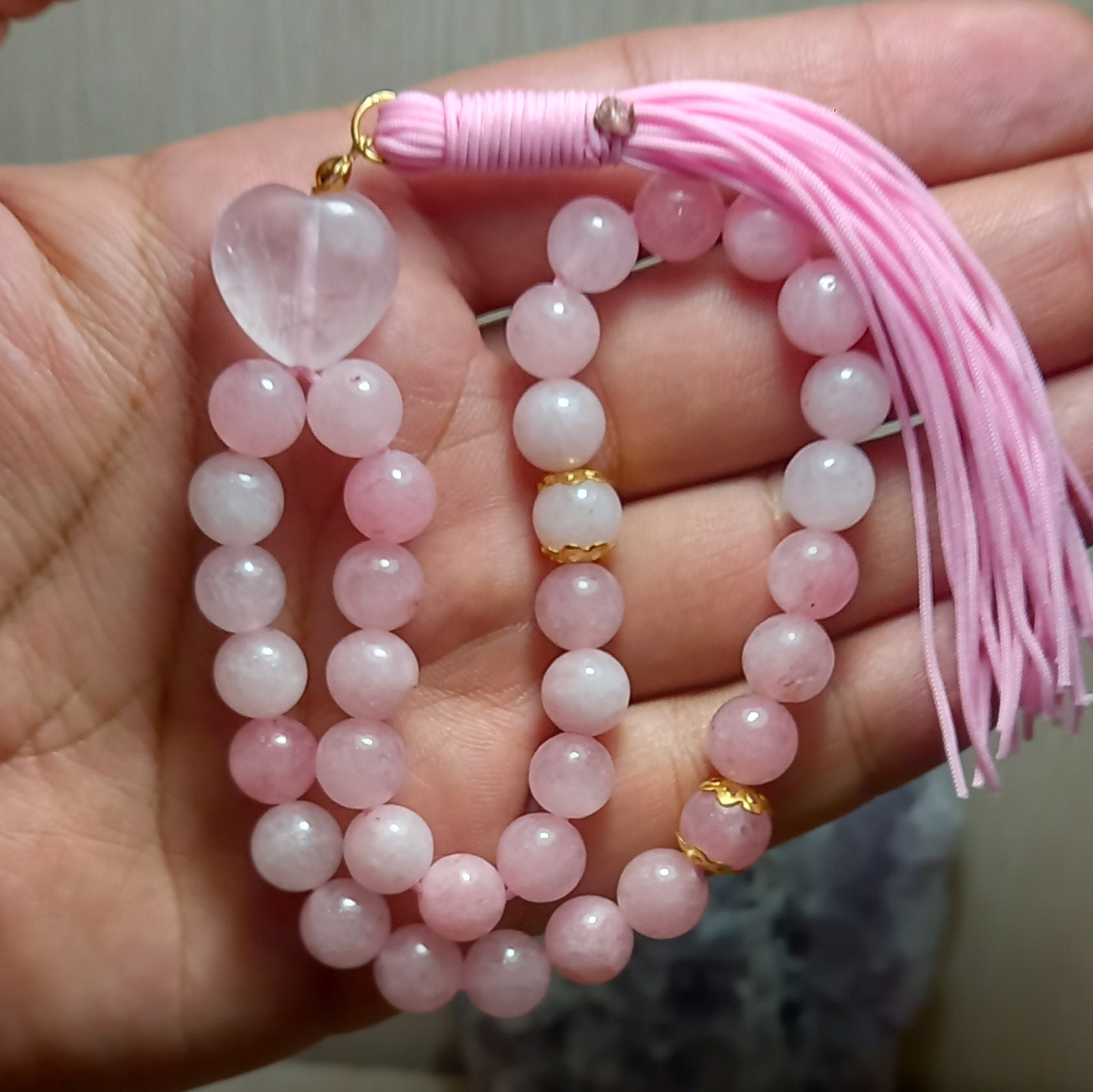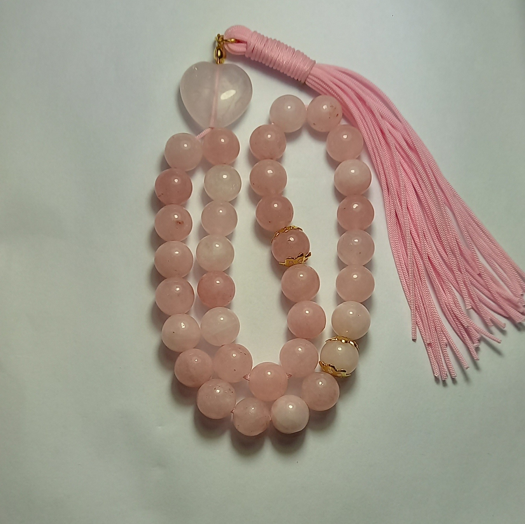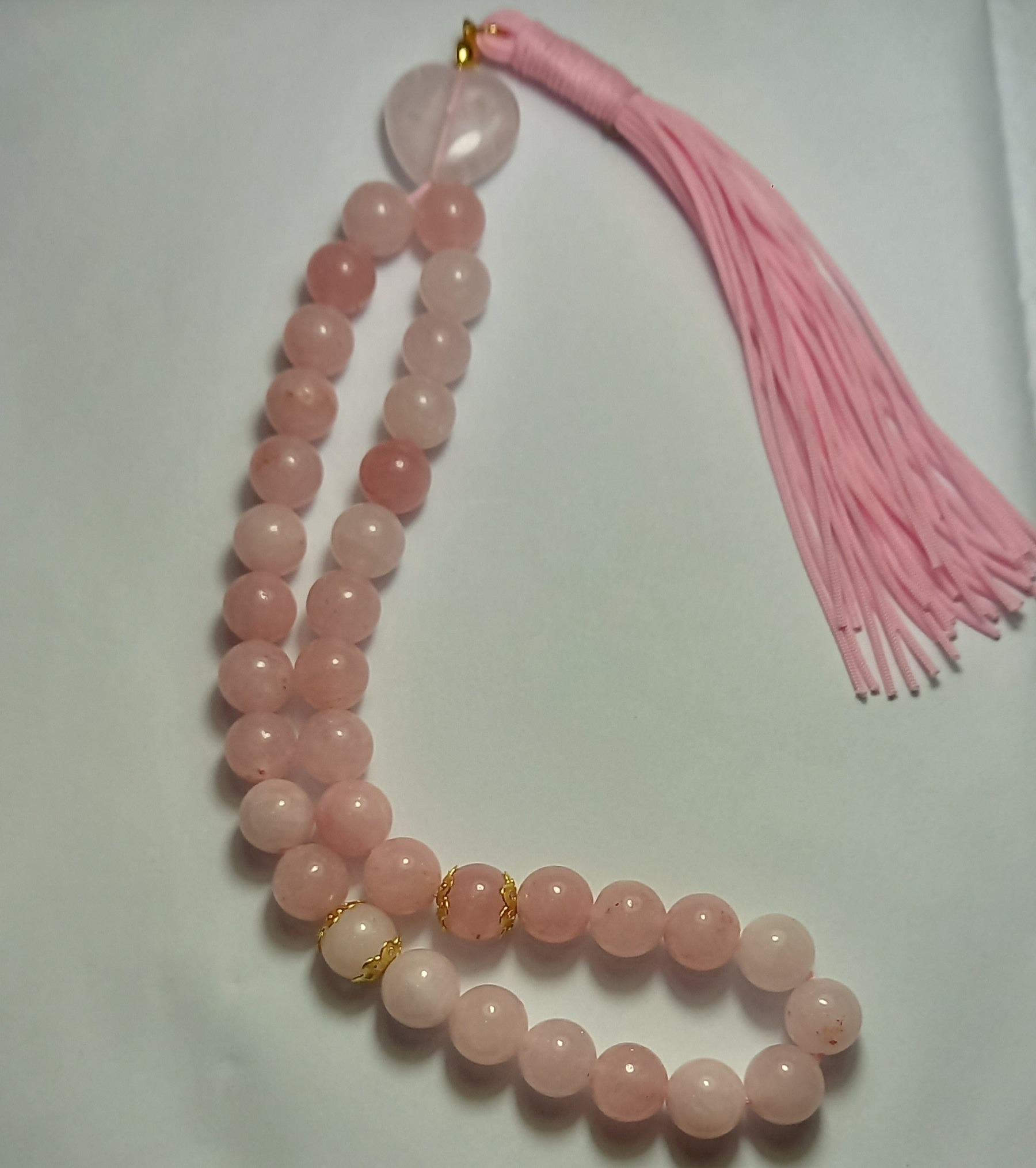 تسبیح کوارتز توت فرنگی با شیخک قلبی سایز 8