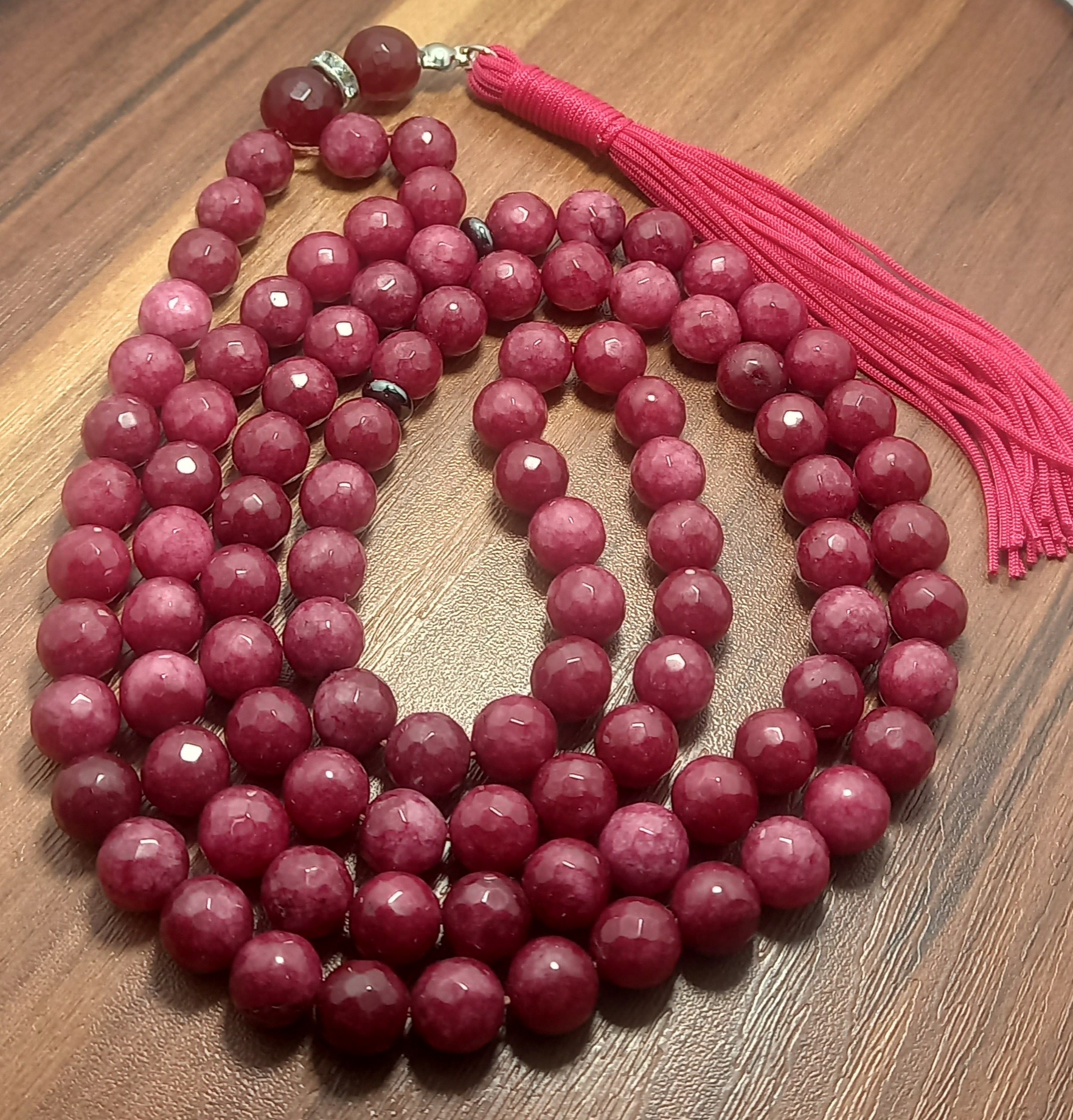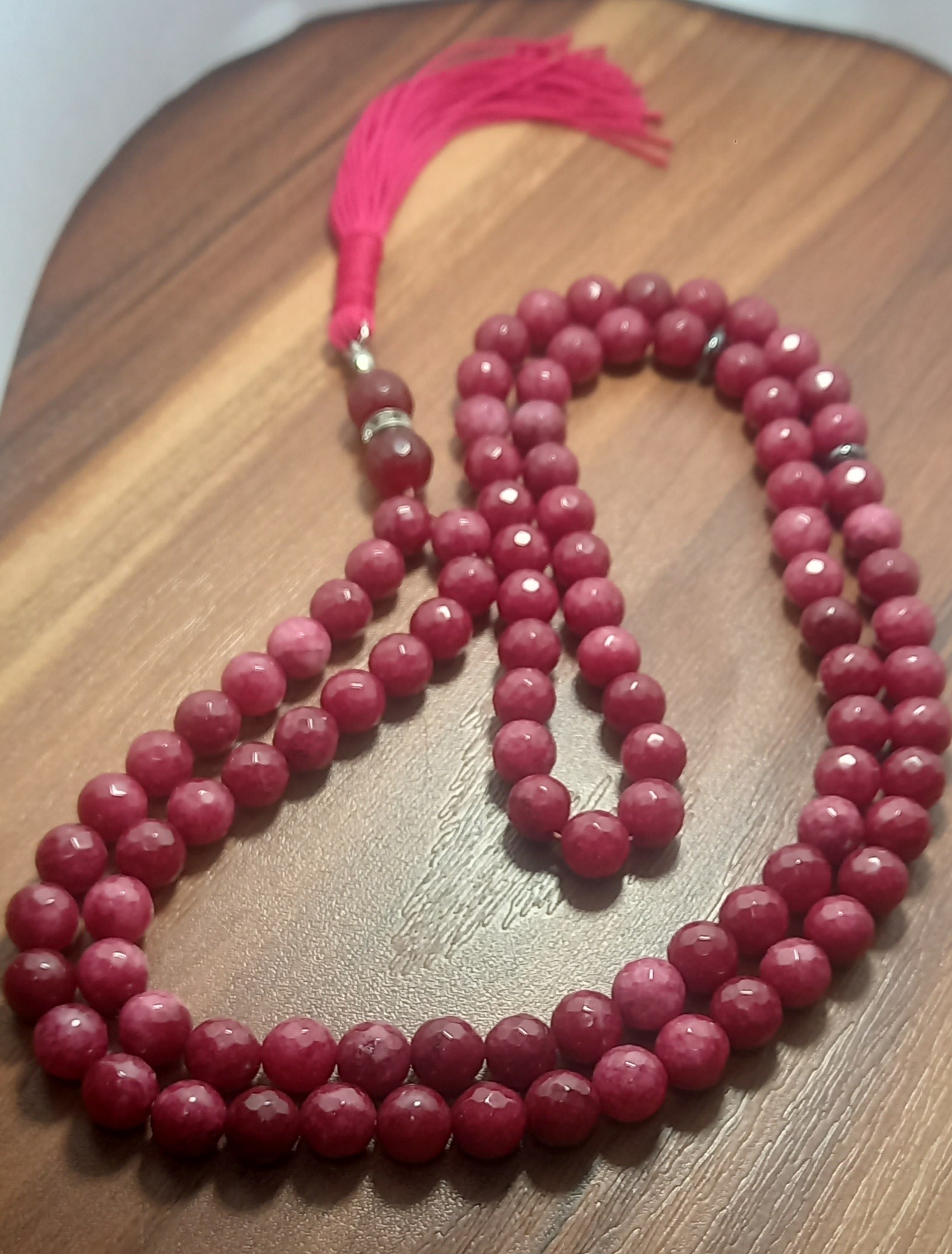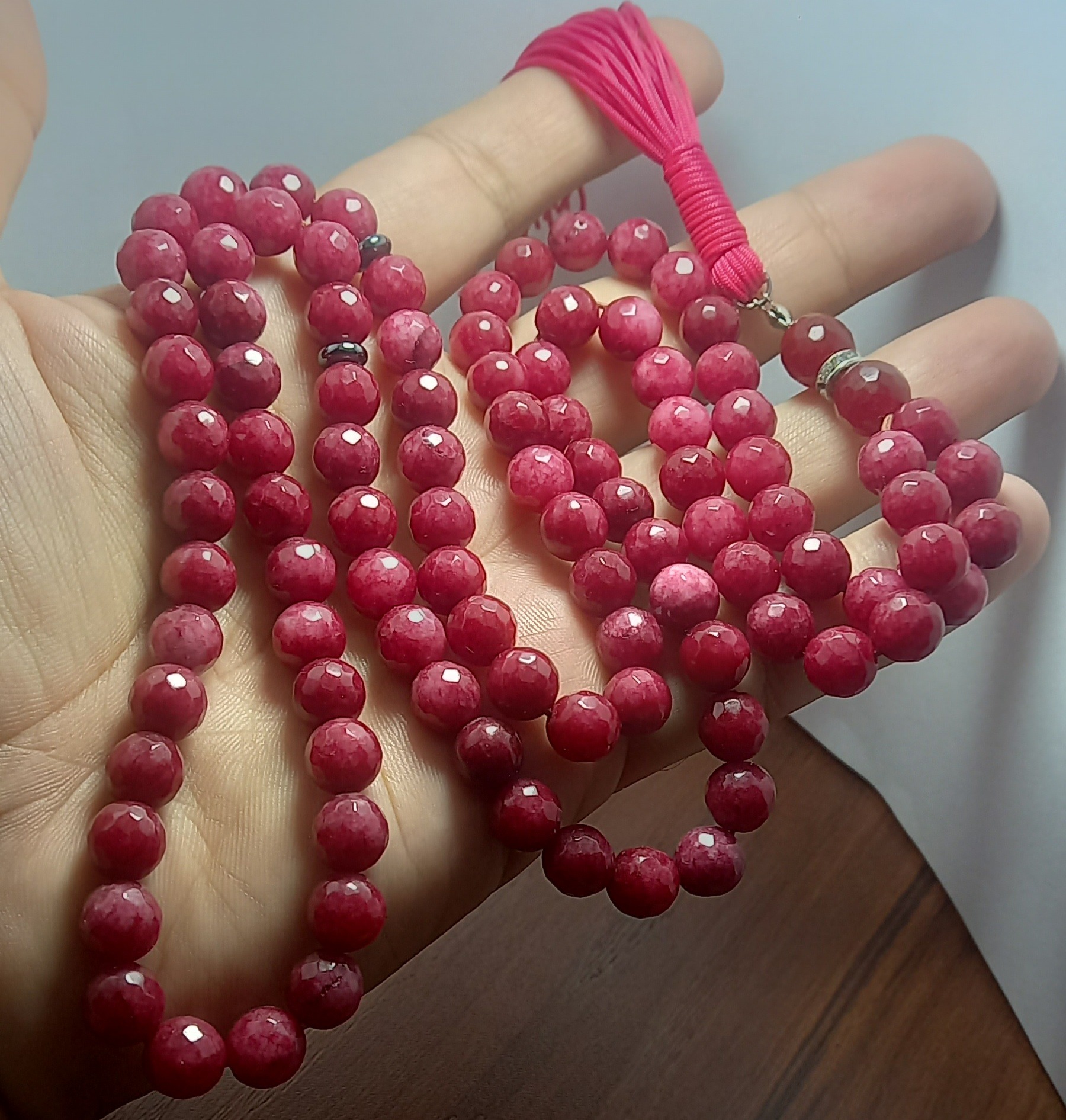 تسبیح یاقوت سرخ تراش زنبوری 101 دانه ای سایز 8