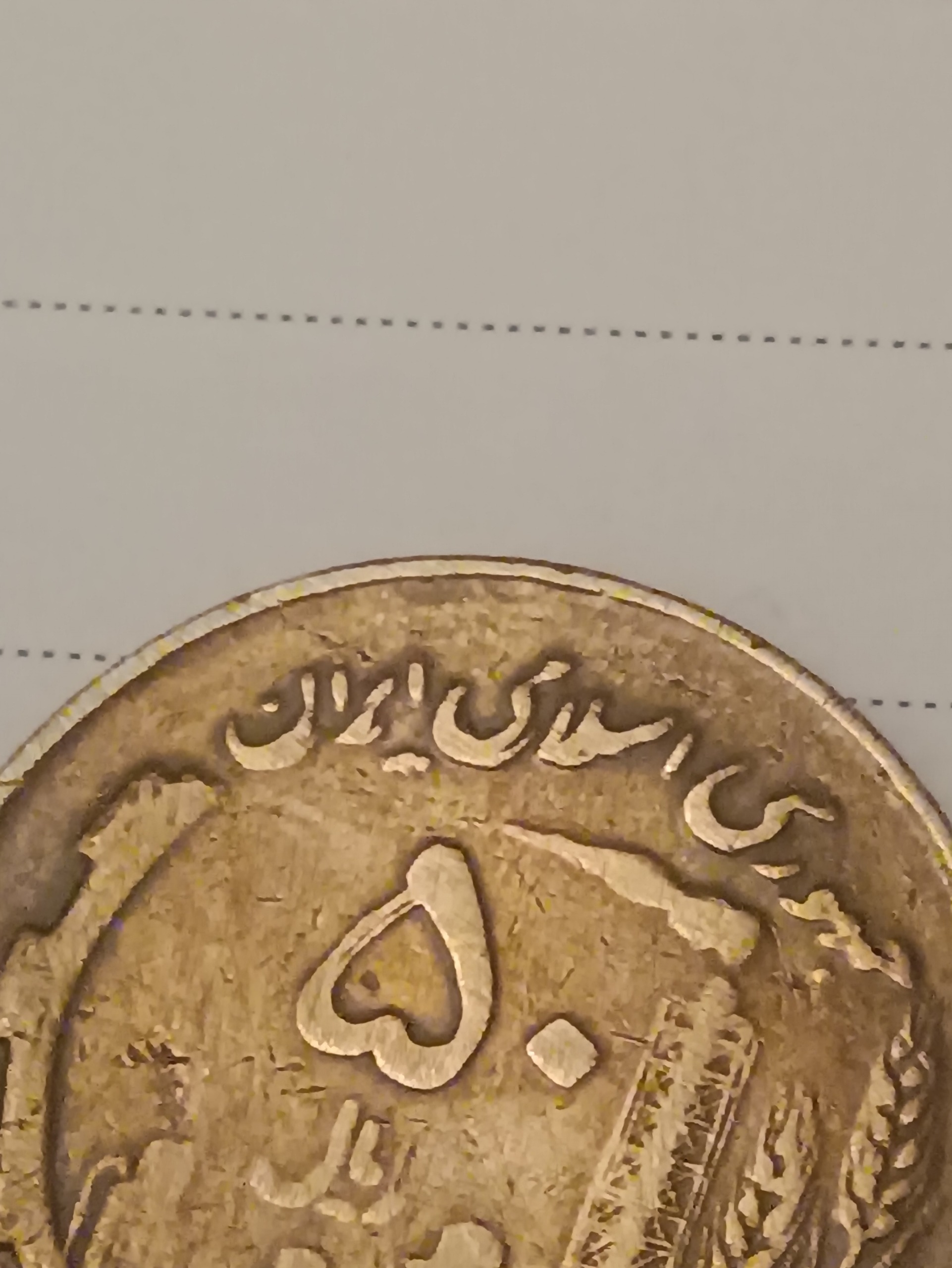 سکه پنجاه ریالی مسی سال 1359 کمیاب صفر بزرگ و و ضرب مجدد سیلندر بالای قسمت روی سکه کلمه اسلامی و ایران دو خط ارور سیلندر کلمه ایران اپران شده کلمه ریال هم تقریبا شبح پر رنگ سطح صاف