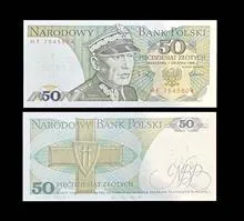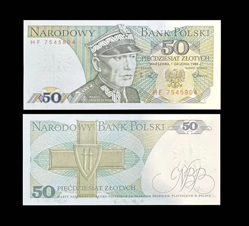 تک 50 زلوتی لهستان با تصویر ژنرال کرول شوییرچفسکی اسکناس در اواخره دهه 80 میلادی در دوران جمهوری خلق لهستان رایج بوده