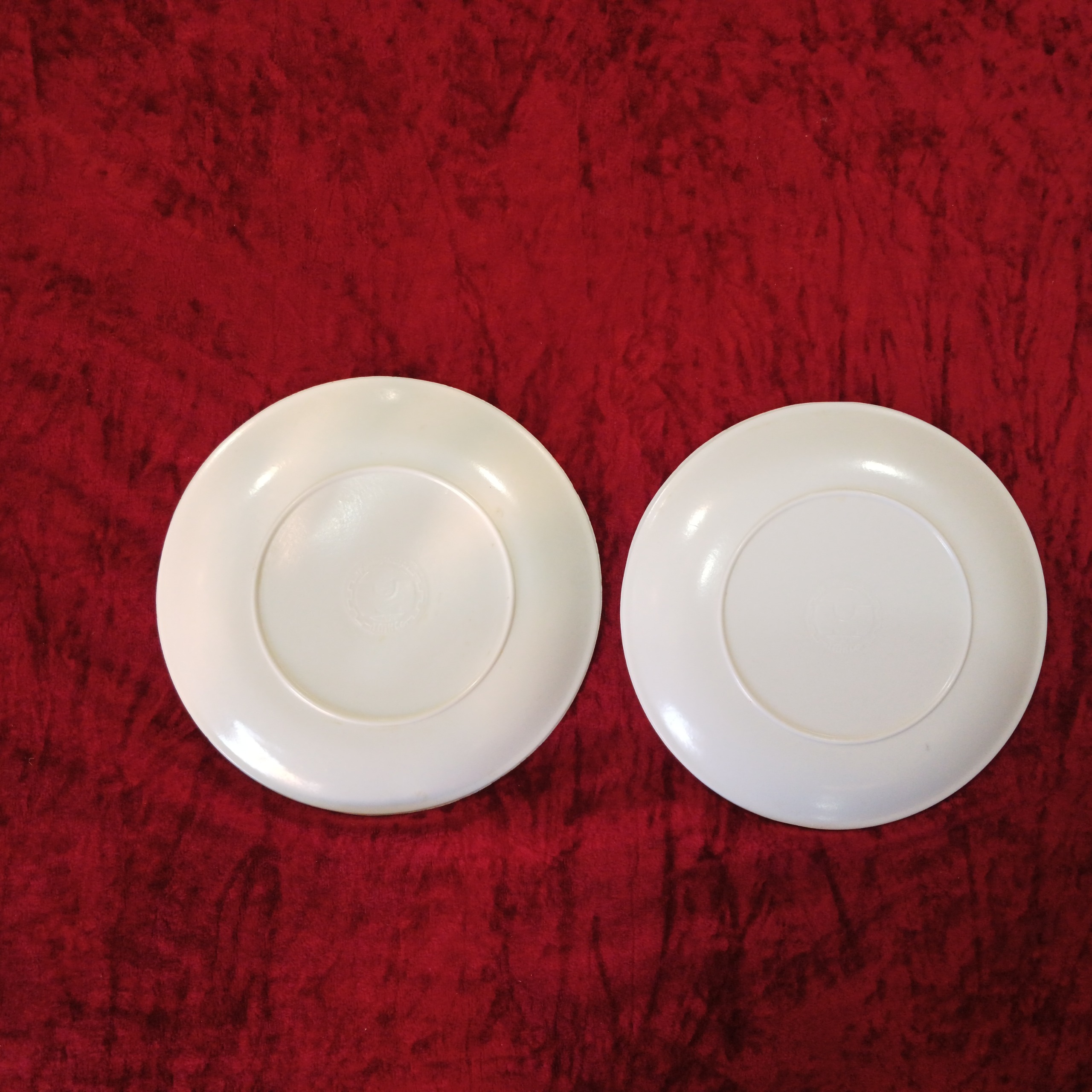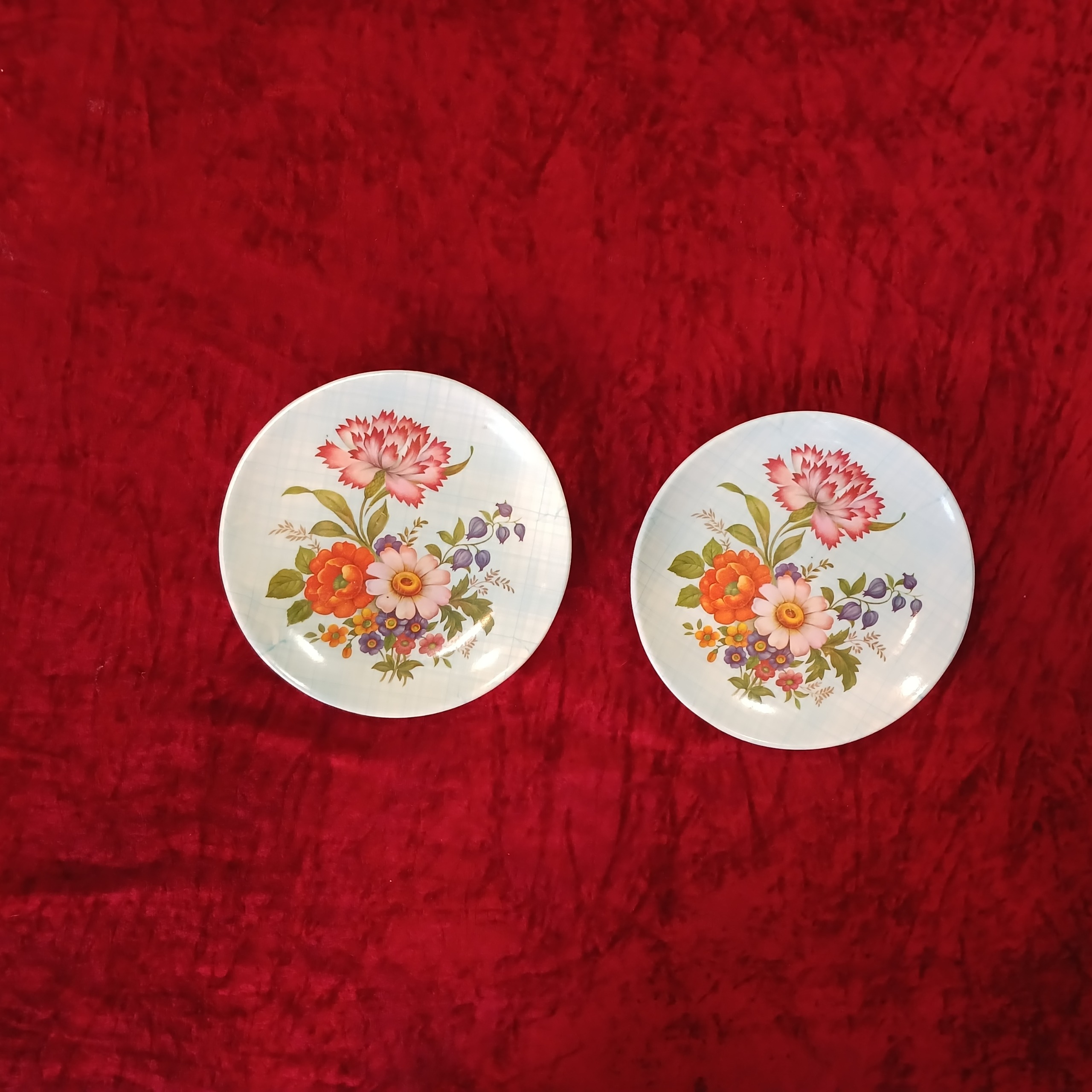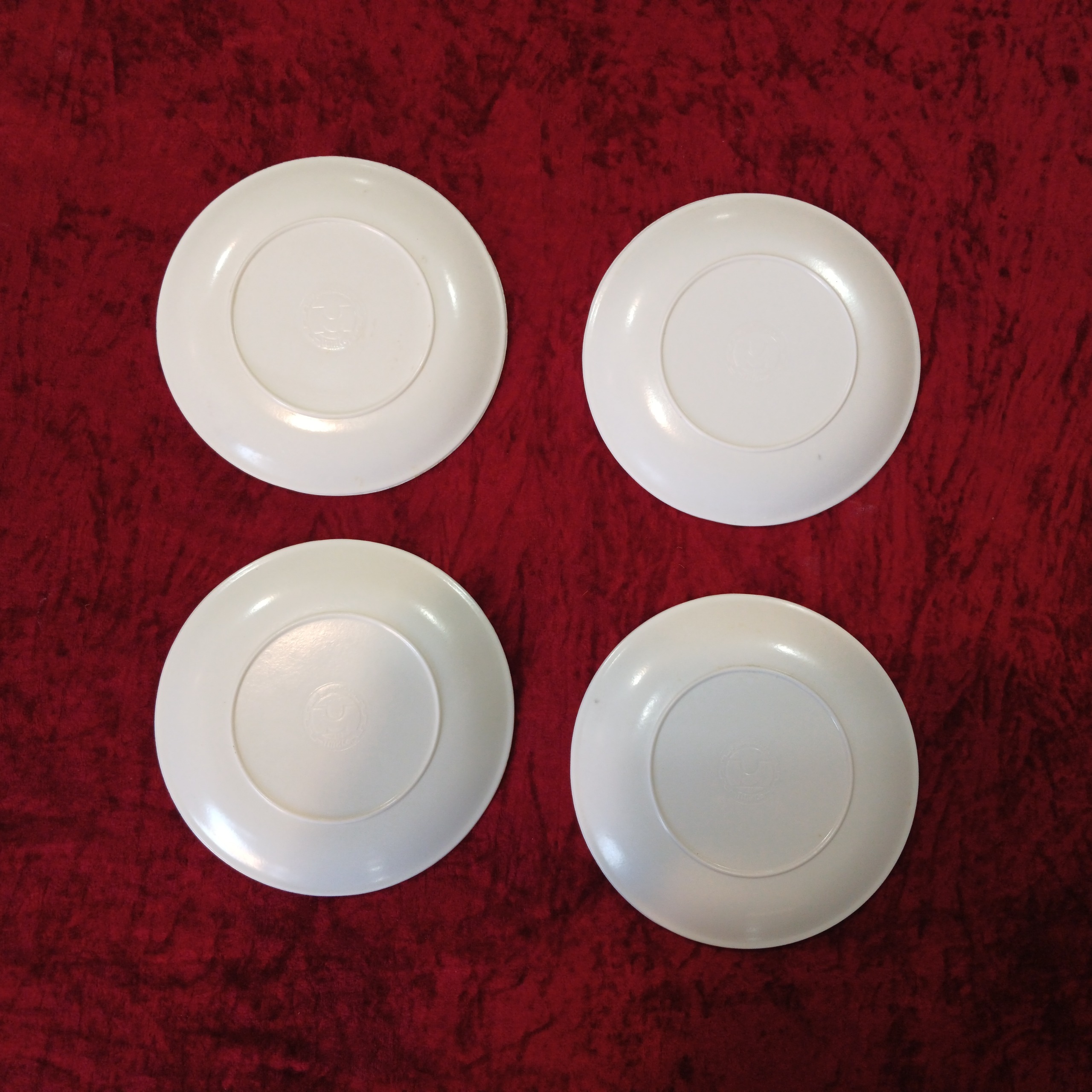 تعداد 4 عدد بشقاب پیش دستی ملامین قدیمی سالم و بدون ایراد کلکسیونی اندازه طول قطر 18 سانت.