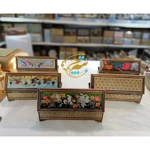 قلمدان خاتم کاری لولایی رو نقاشی مدل پره وارو