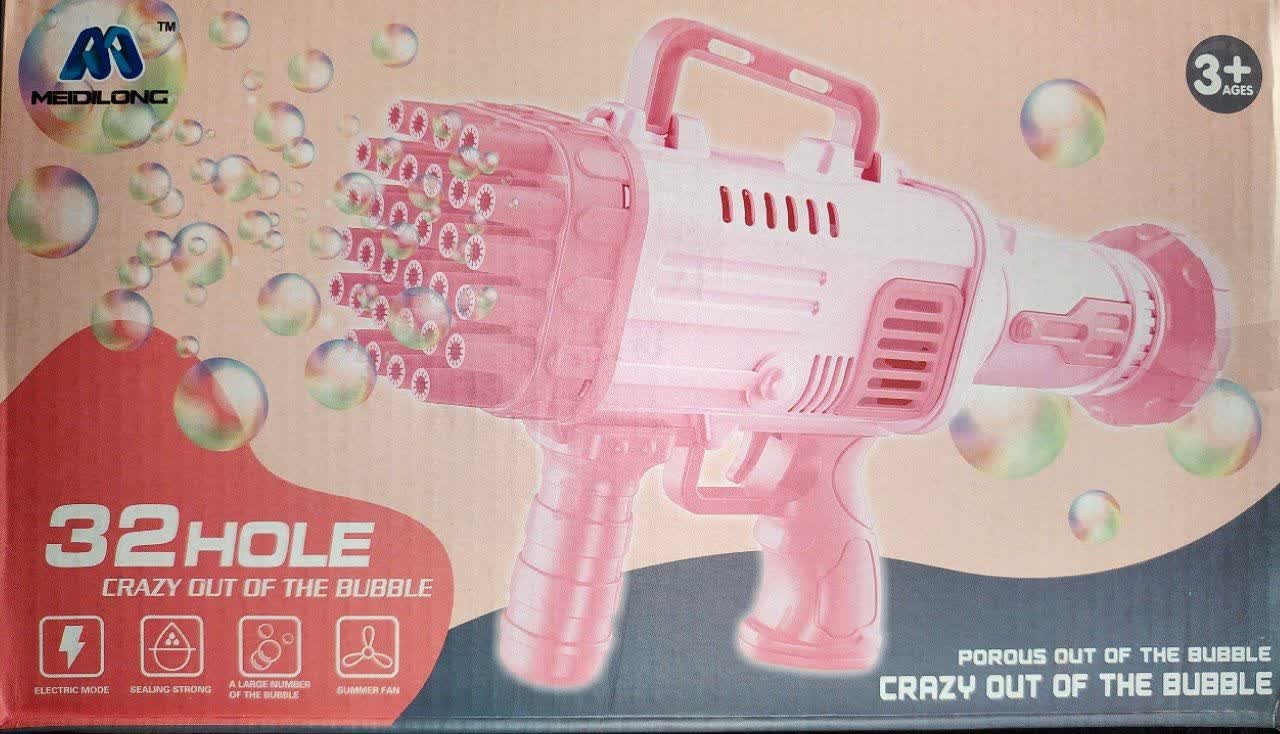**تفنگ حباب ساز 32 سوراخه | پرتاب هزاران حباب رنگی + قابلیت فن خنککننده | ارسال رندوم رنگ | ترگل تویز**