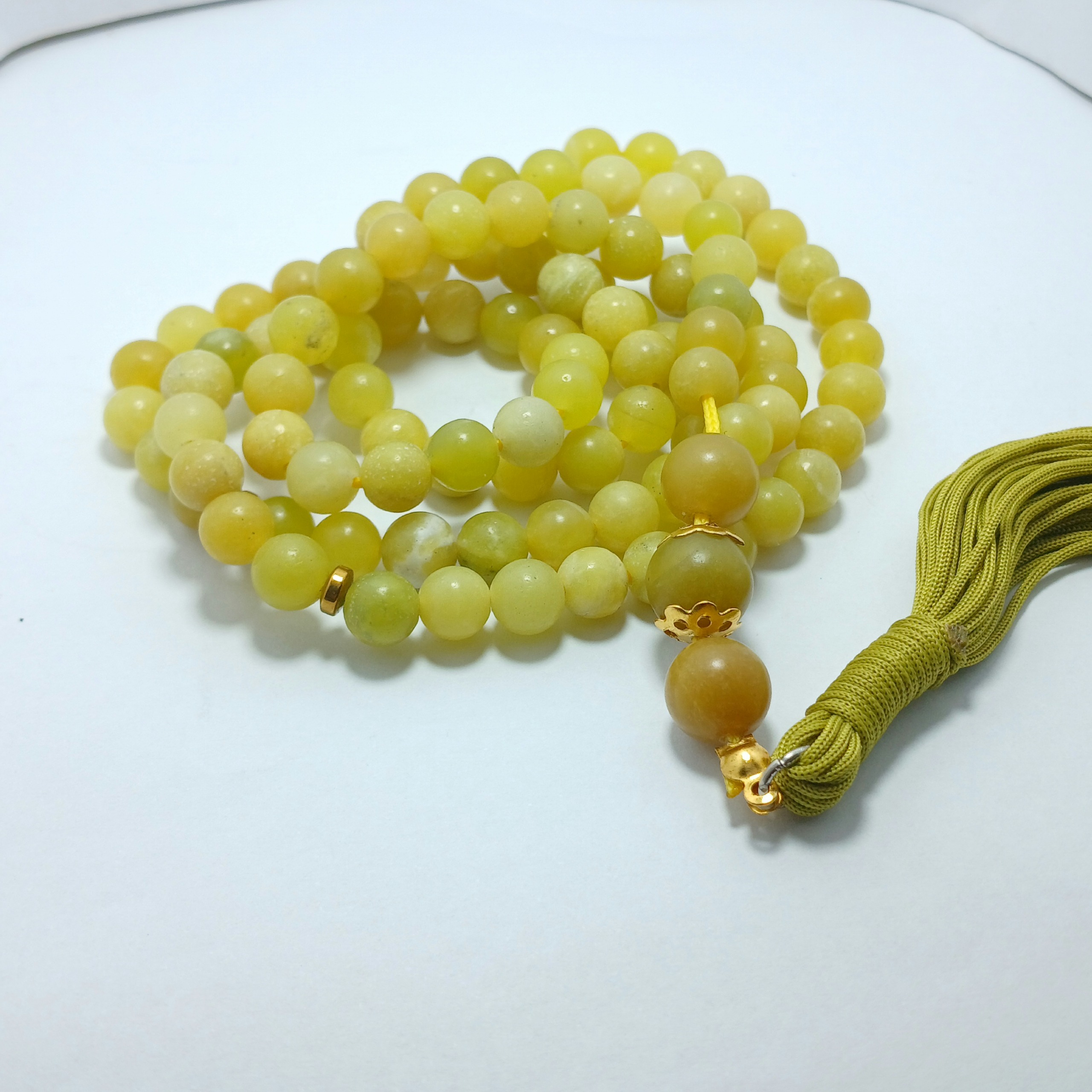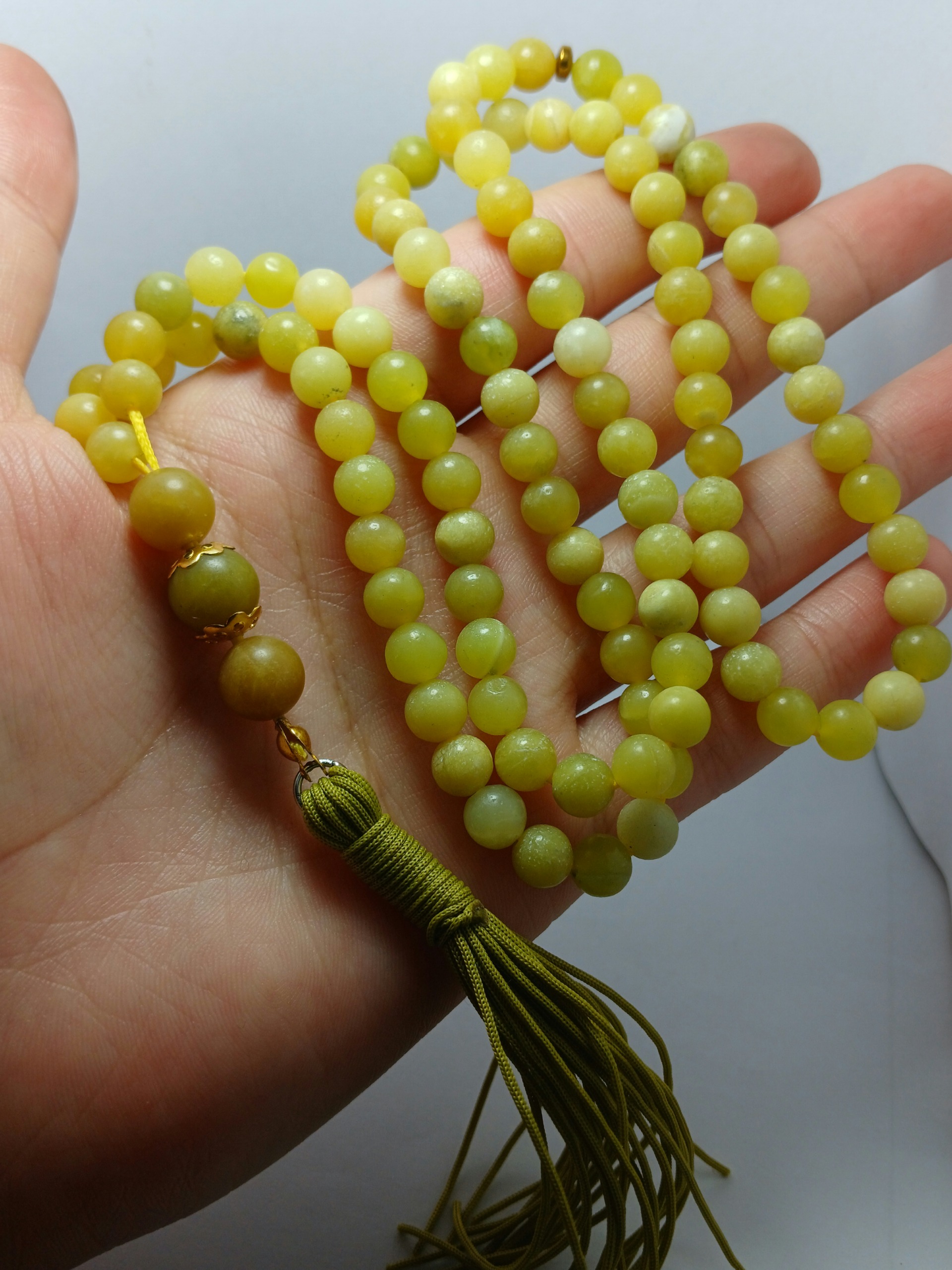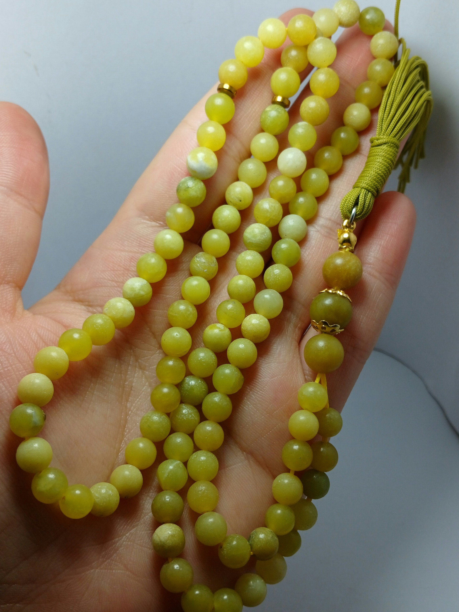 تسبیح سنگی یشم زرد افغان معدنی و عالی بسیار زیبا و چشم نواز