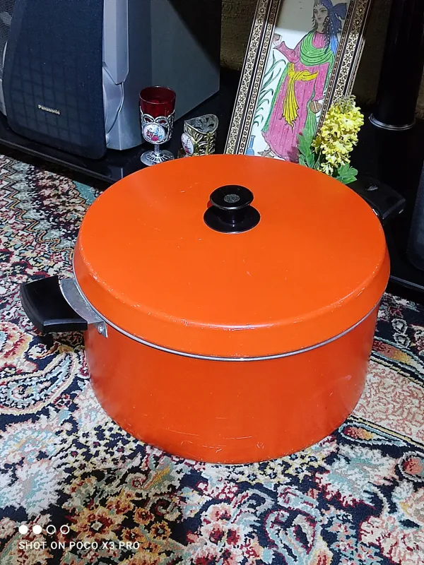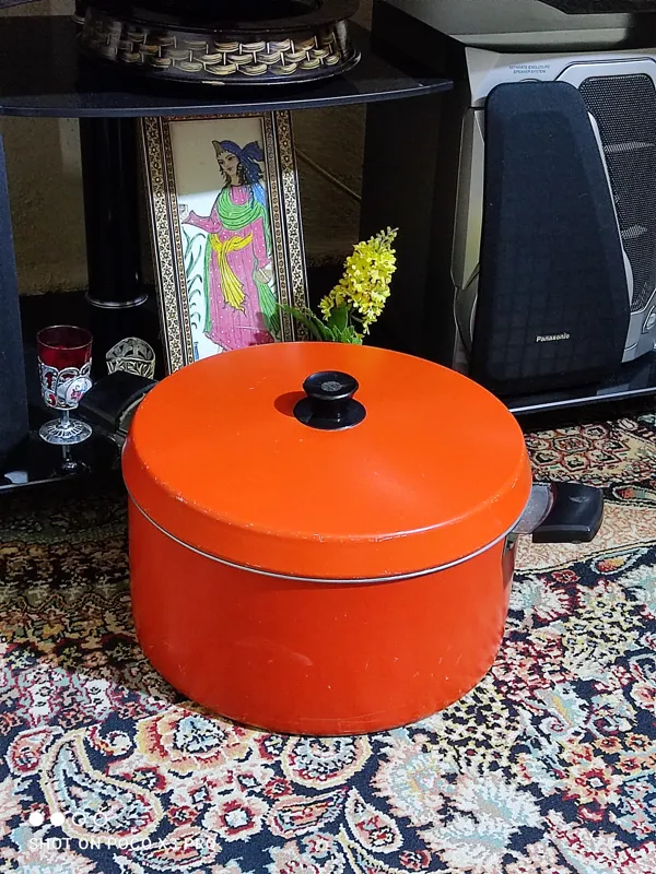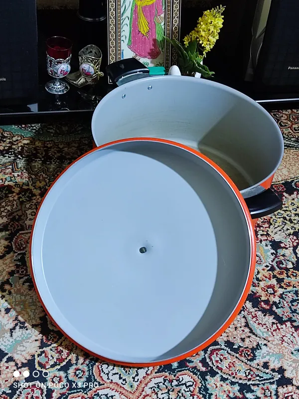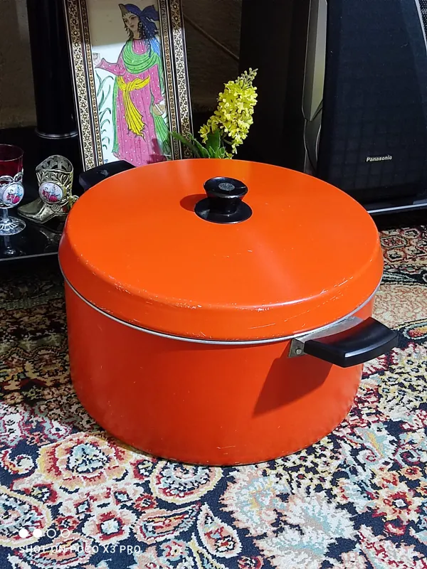 قابلمه آلومنیومی قدیمی سایز بزرگ حدودا هفت هشت نفره ایتالیایی بسیار تمیز و بکر بسیار محکم و جوندار و بسیار خوش ساخت و خوش قیمت مطابق تصاویر قطر دهانه 31 سانت ارتفاع 14/5 سانت یکار زیبا و خاص