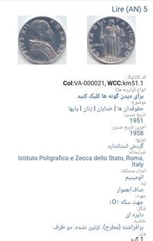 سکه 5لیره شهر واتیکان1951 ((3002))