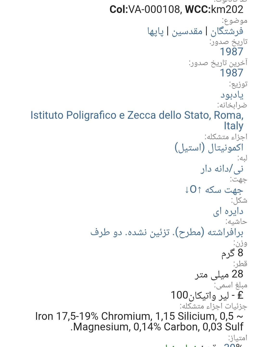 اسکن خود سکه می باشد از بعضی سکه تعداد هست برای انتخاب دوستان به صورت جداگانه در فروشگاه چیده شد اسکن ارائه شده از کالا ملاک خرید قرار دهید در تصاویر دوم سوم چهارم توضیحات کامل هست از ابعاد وزن قطر کالادر خرید خود دقت کنید
