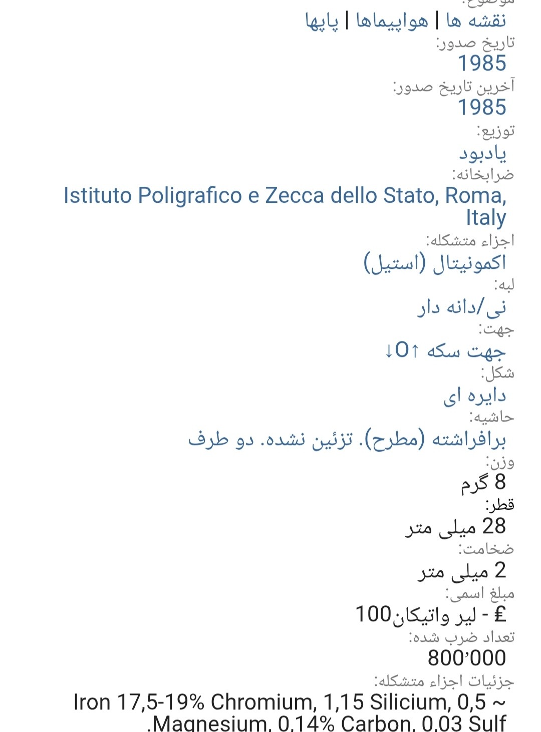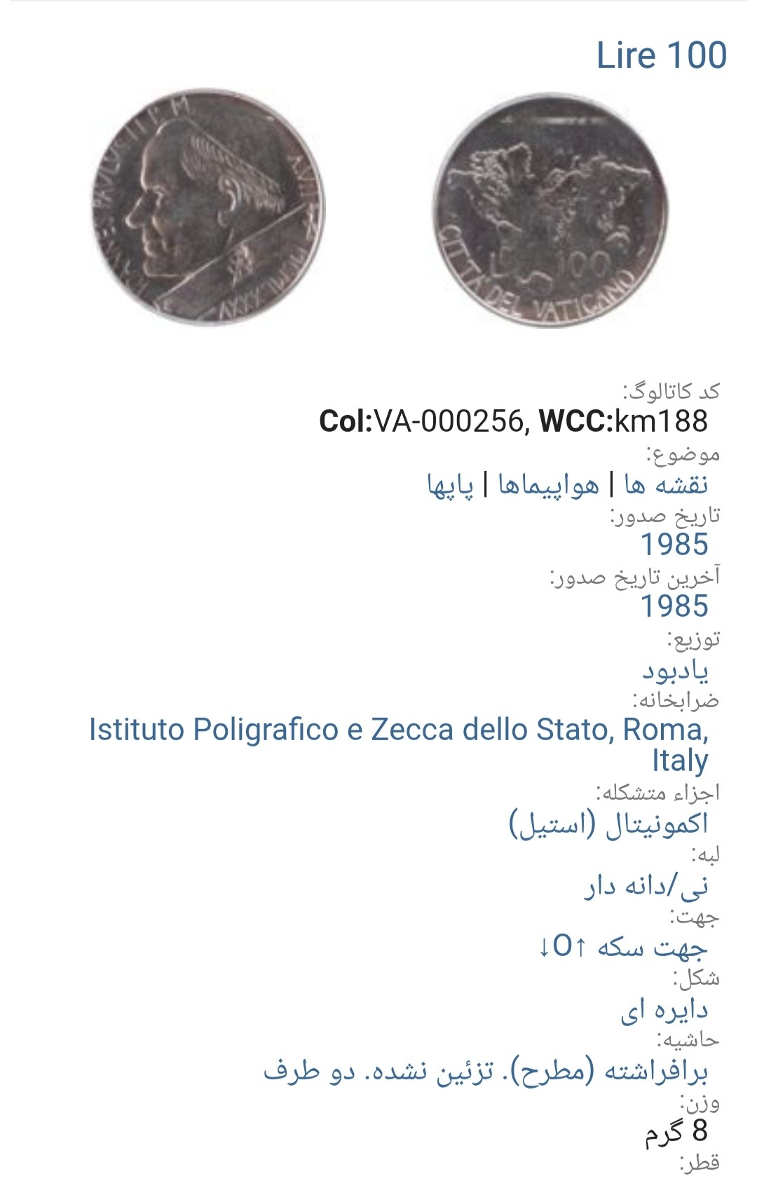 سکه 100لیره یادبودی شهر واتیکان1985((3002))