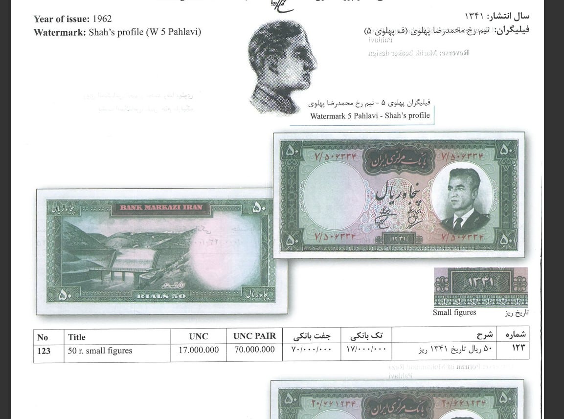اطلاعات روسای بانک و وزا و بازرسان دولت - محل چاپ اسکناس ها و تاریخ انتشار و تیراژ