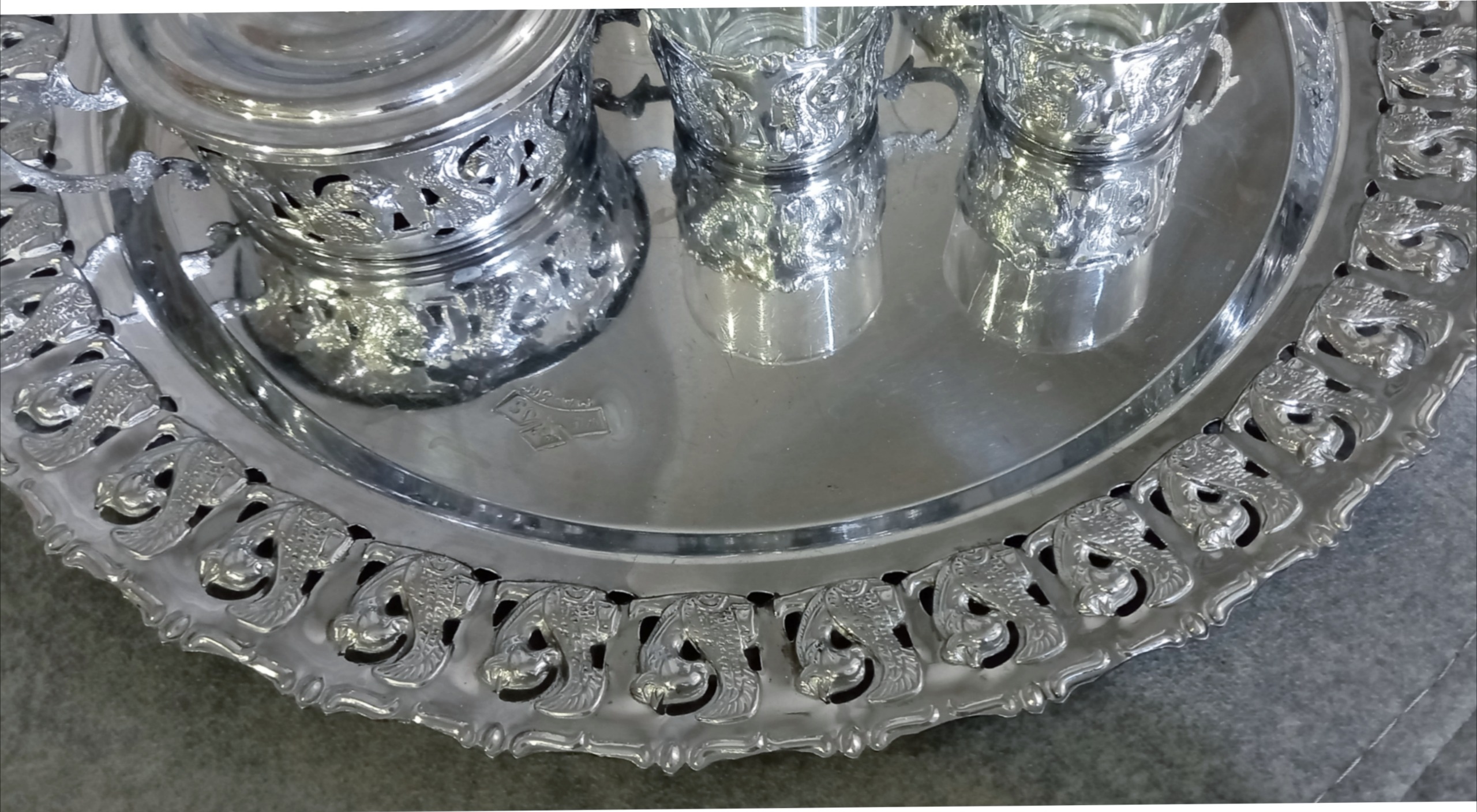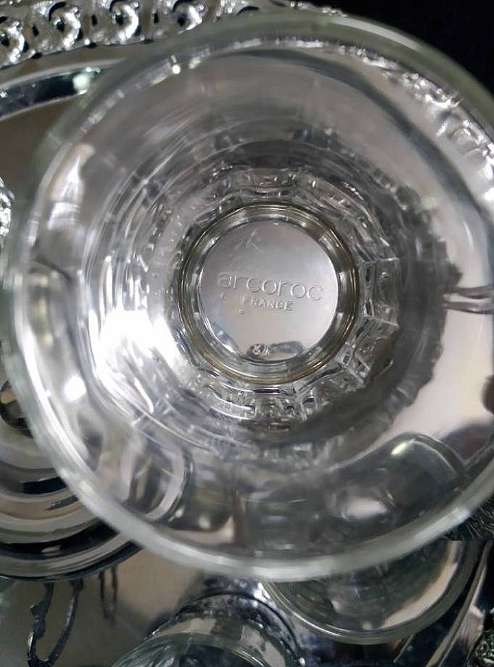 استکانها فرانسوی هستند و روی سینی مهر سازنده حک شده