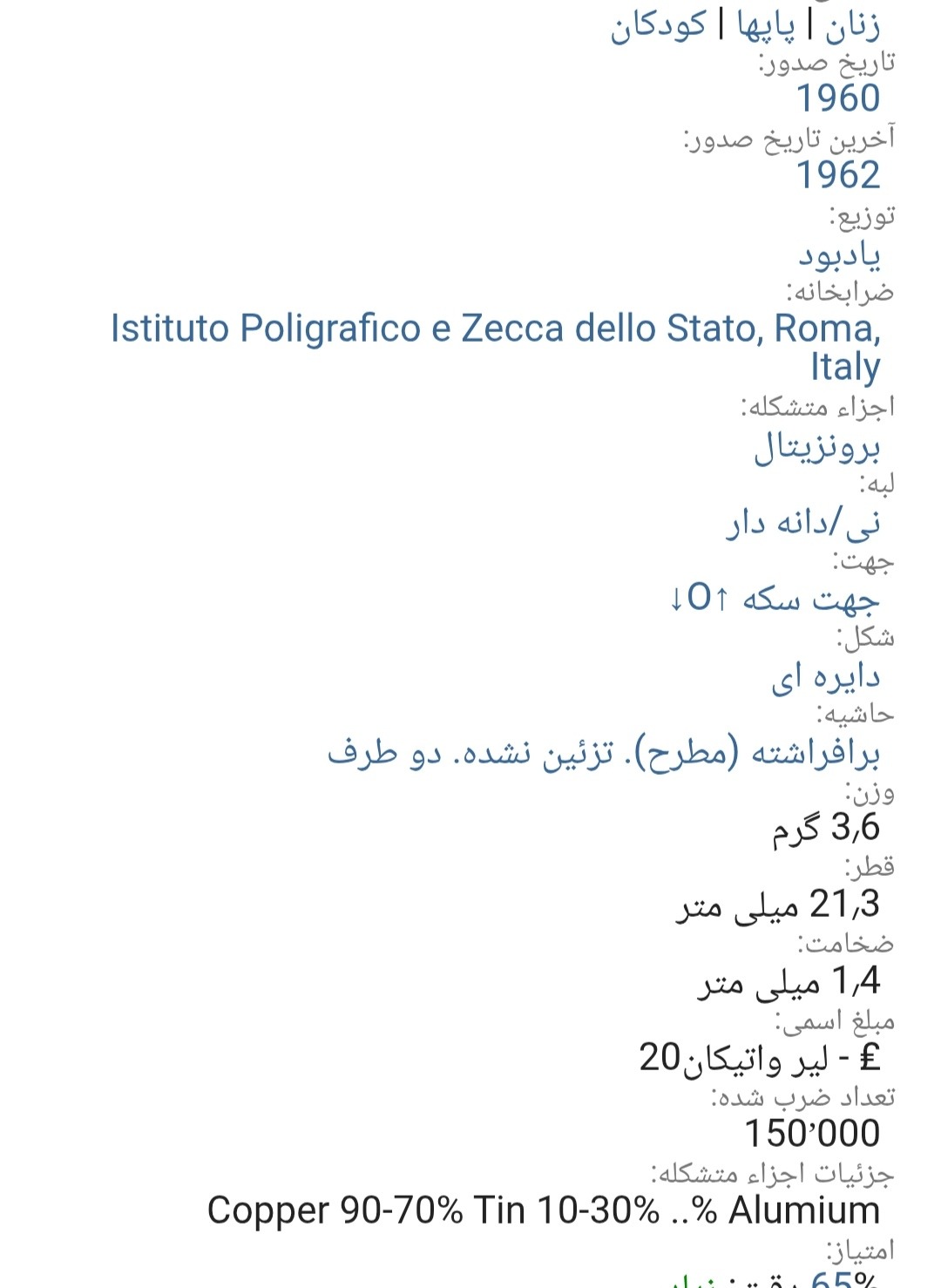 اسکن خود سکه می باشد از بعضی سکه تعداد هست برای انتخاب دوستان به صورت جداگانه در فروشگاه چیده شد اسکن ارائه شده از کالا ملاک خرید قرار دهید در تصاویر دوم سوم چهارم توضیحات کامل هست از ابعاد وزن قطر کالادر خرید خود دقت کنید