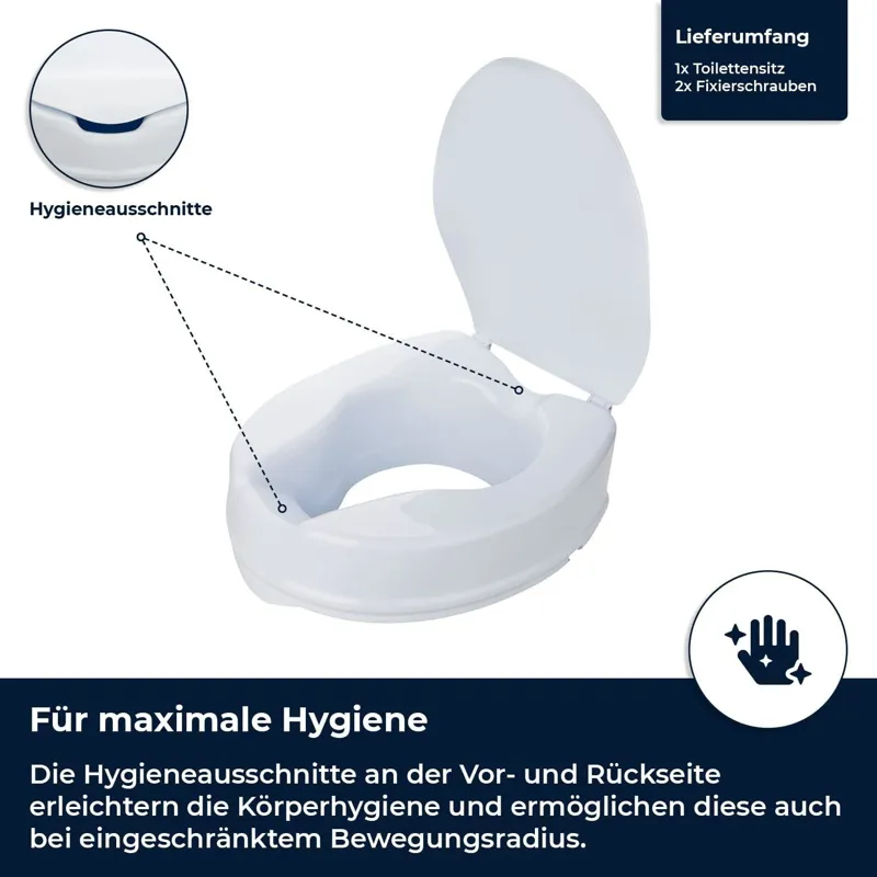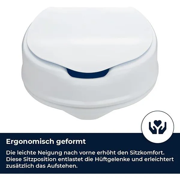 صندلی توالت بلند شده با راحتی: کمی شیب به جلو، راحتی صندلی را افزایش می دهد. این حالت نشستن مفاصل ران را تسکین می دهد. علاوه بر این، بلند شدن را راحت تر می کند.