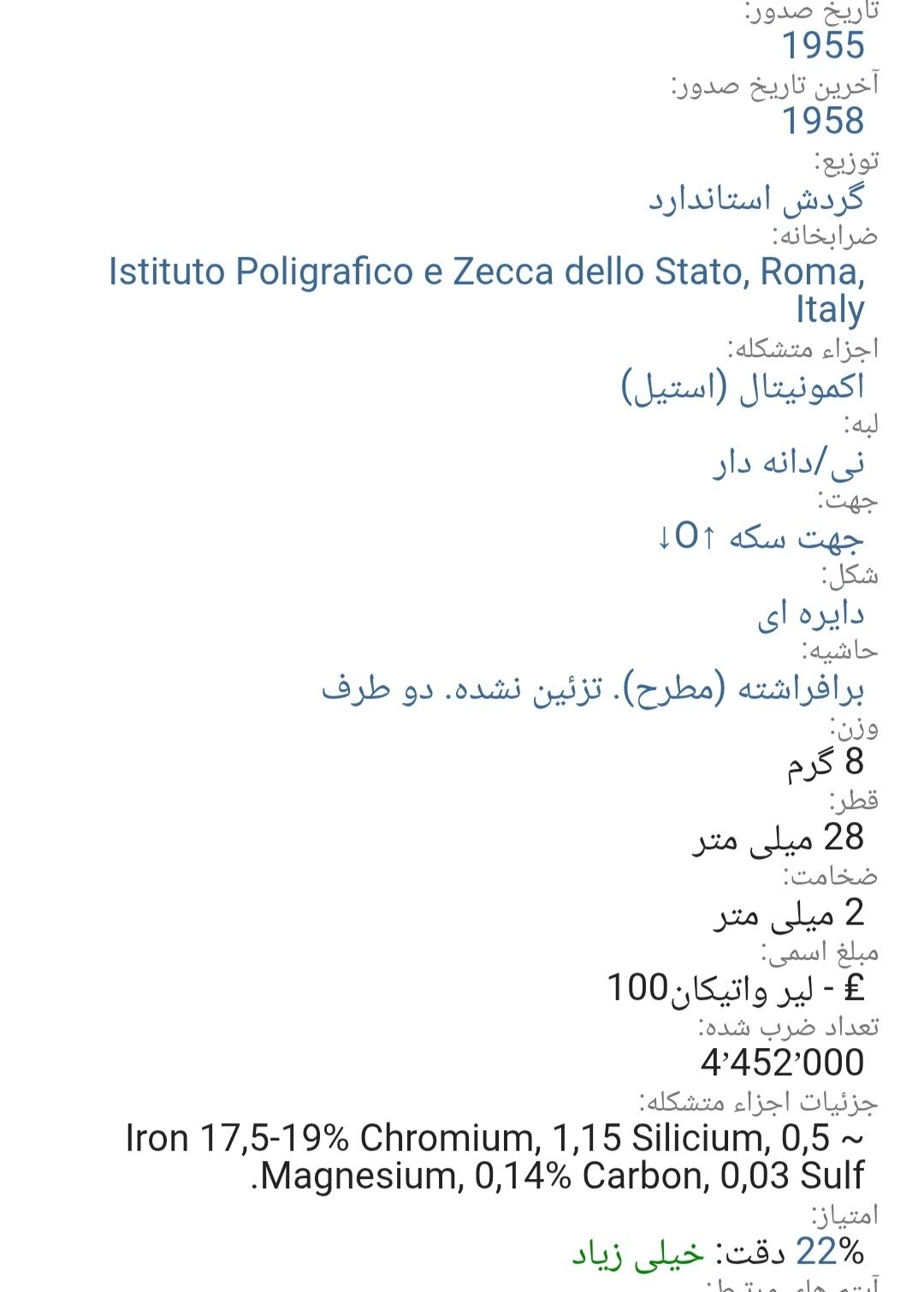 اسکن خود سکه می باشد از بعضی سکه تعداد هست برای انتخاب دوستان به صورت جداگانه در فروشگاه چیده شد اسکن ارائه شده از کالا ملاک خرید قرار دهید در تصاویر دوم سوم چهارم توضیحات کامل هست از ابعاد وزن قطر کالادر خرید خود دقت کنید