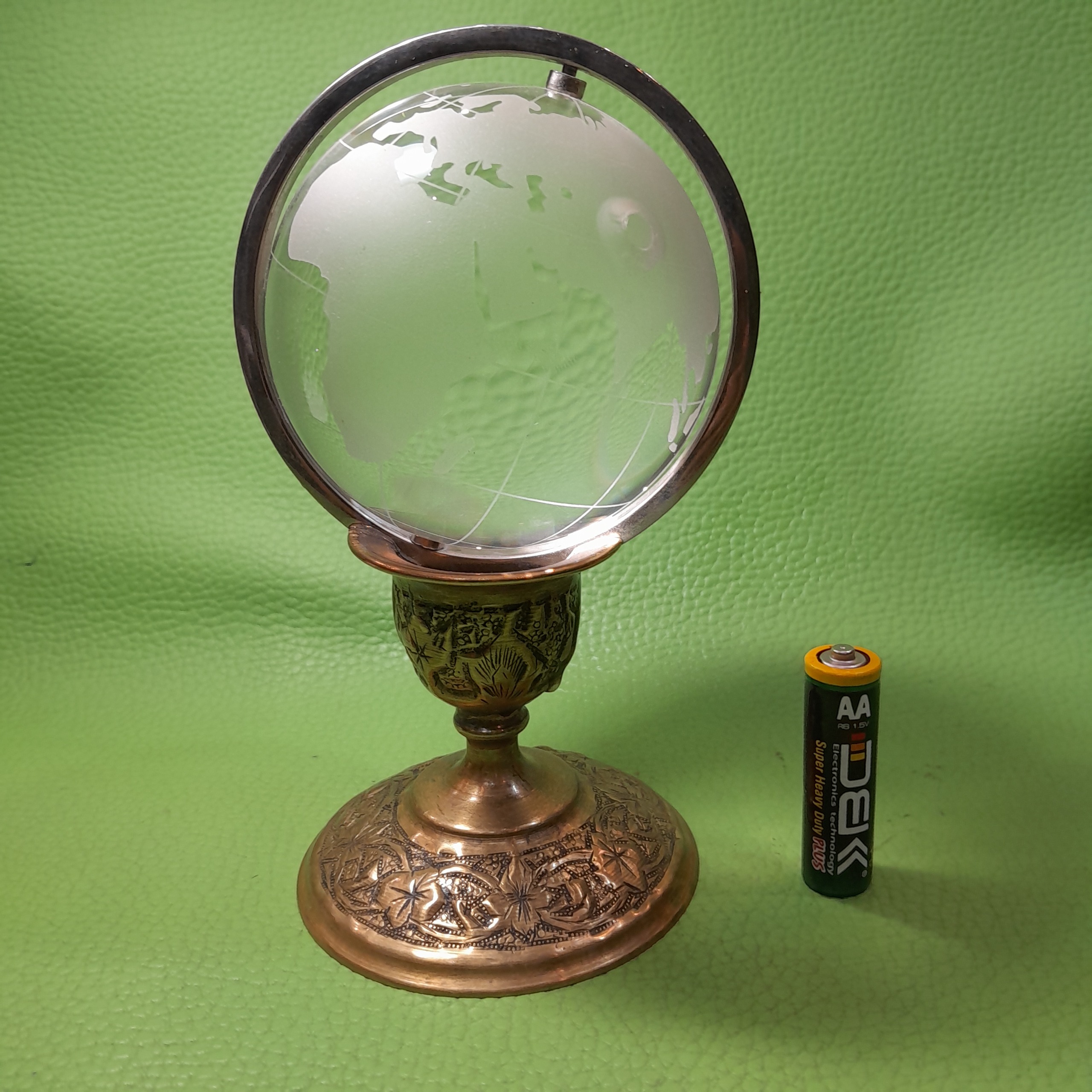 ارتفاع 16 سانت پایه برنجی کره زمین کریستال