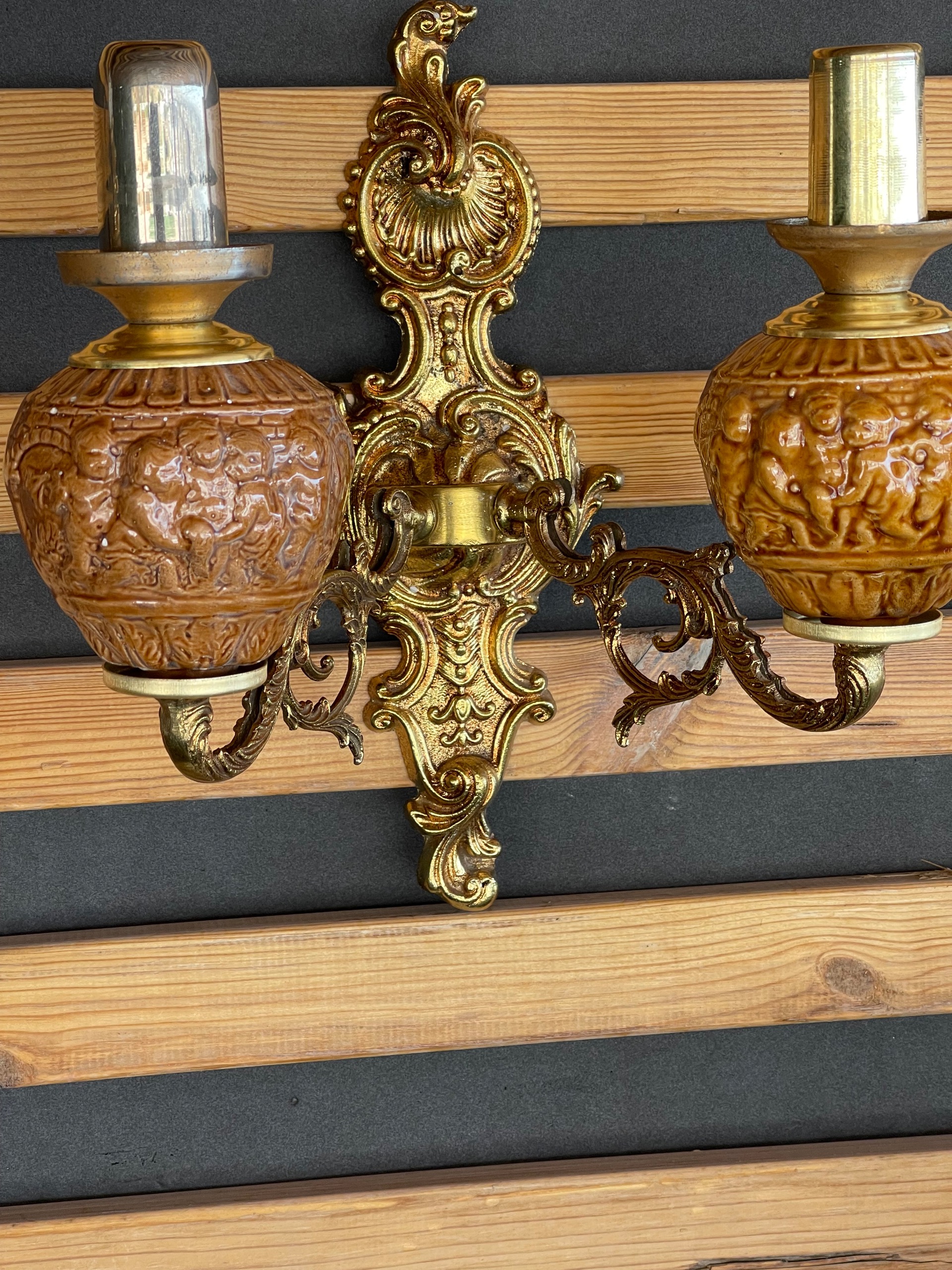 چراغ دیواری دو شعله برنزی