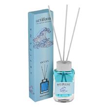 خوشبو کننده آرتیفیوم یکی از برندهای محبوب خوشبو کننده چوبی در ایران می باشد. رایحه اقیانوس یکی از خاص ترین رایحه های خوشبوکننده آرتیفیوم میباشد . این خوشبوکننده از طریق چوب های سفید رنگ که داخل ان قرار می گیرد در هوا پخش می شود.و با توجه به تعداد چوب هایی که در ان قرار می گیرد میزان بو و پخش رایحه کم و زیاد می شود. پخش بوی این رایحه همیشگی می باشد و تا زمان اتمام مایع داخل ظرف و معمولا از 3 الی 5 ماه تا خالی شدن مایع داخل ظرف (به تعداد چوب های داخل شیشه بستگی دارد) طول می کشد. باتوجه به وجود الکل چرب در این خشبو کننده لذا به ضدعفونی شدن هوا نیز کمک شایانی میکند . این محصول برای تمامی محیط ها مانند فروشگاه ها ، خانه و آشپزخانه ، سرویس بهداشتی ، دفاتر ، مطب ، ادارات ، داروخانه ها و . . . مورد استفاده قرار می گیرد.