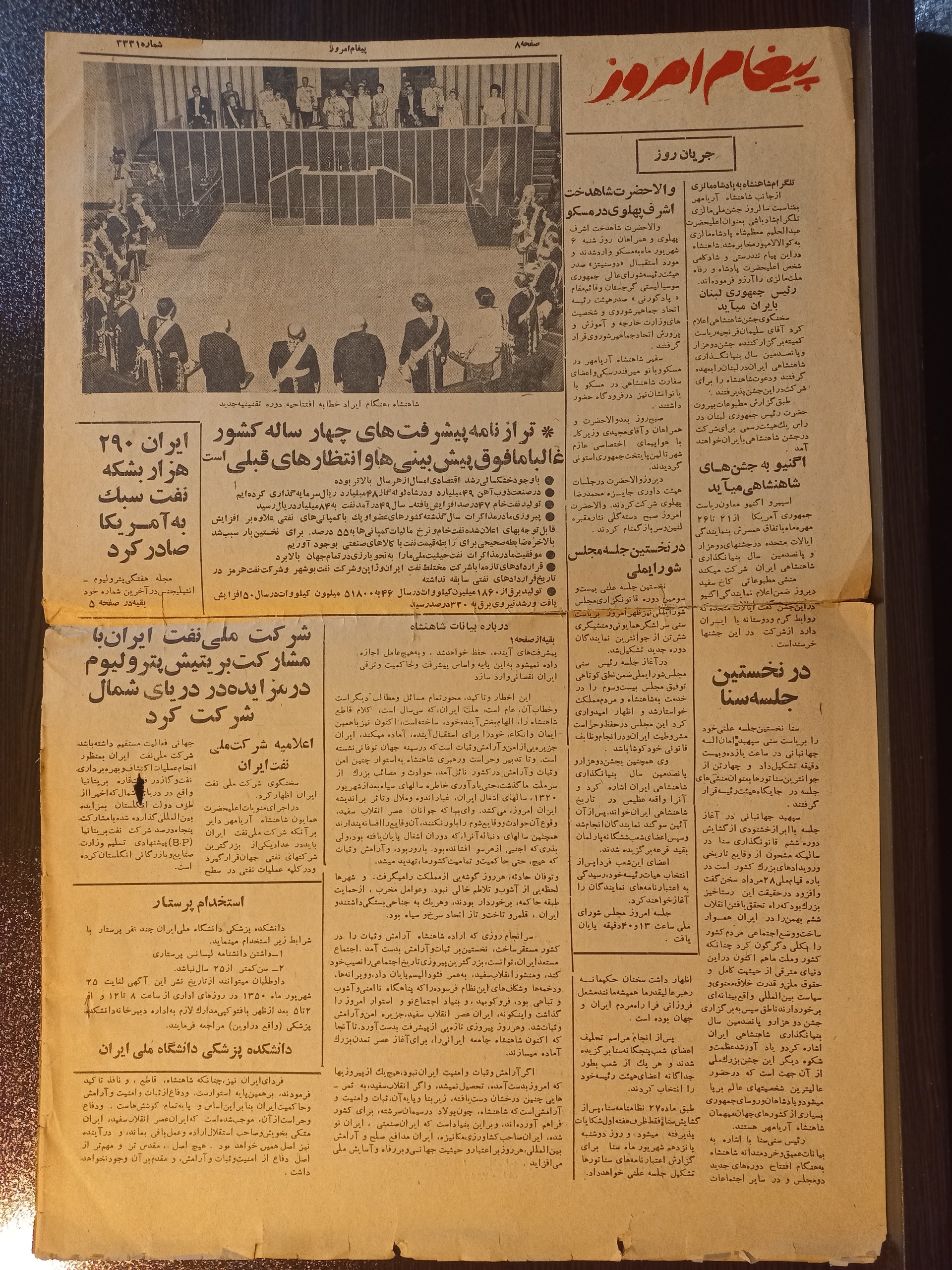 روزنامه قدیمی پیغام امروز شاه شهریور1350