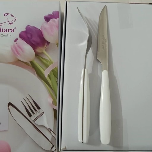 ست کارد و چنگال میوه خوری تیغه یک پارچه بدون جدا شدن از دسته تیغه فوق العاده تیز بهترین کیفیت فولاد ضد زنگ 6 عدد چنگال میوه خوری 6 عدد کارد میوه خوری ست کارد و چنگال طرح سرامیکی جنس عالی و قیمت بسیار مناسب