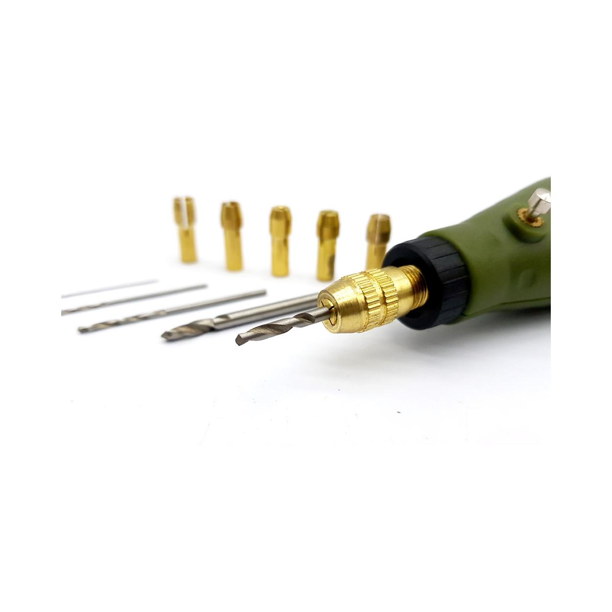 مینی دریل ابعاد بسیار کوچکی دارد و حتی میتوان آن را مانند یک قلم (البته بزرگتر از قلمهای رایج هست) در دست گرفت. همین مورد به شما اجازه میدهد که پروژههای کوچک و مینیاتوری مانند انواع ماکت را با استفاده از تیغهها و ابزارهای مخصوص مینی دریل بسازید.