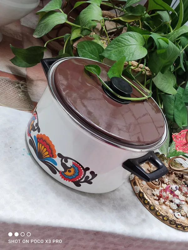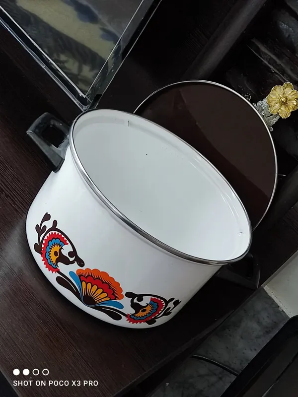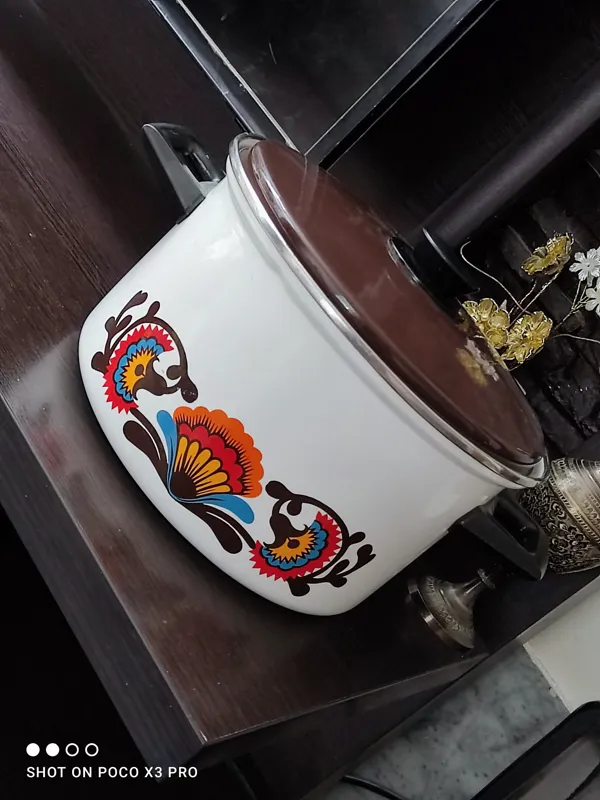 یک عدد قابلمه لعابی قدیمی یکار خاص و بی نظیر سنگین و جوندار این قابلمه نو نو هست اصلا استفاده نشده فقط یه جاش یه تک سیاه داره سایز بزرگ تقریبا تقریبا شش نفره میشه گفت تصاویر مشخصه که چقد تمیز و بکره تصویری که از پشت قابلمه عکس گرفته شده سمت ساعت 10 تک سیاه که گفتم اونجاس